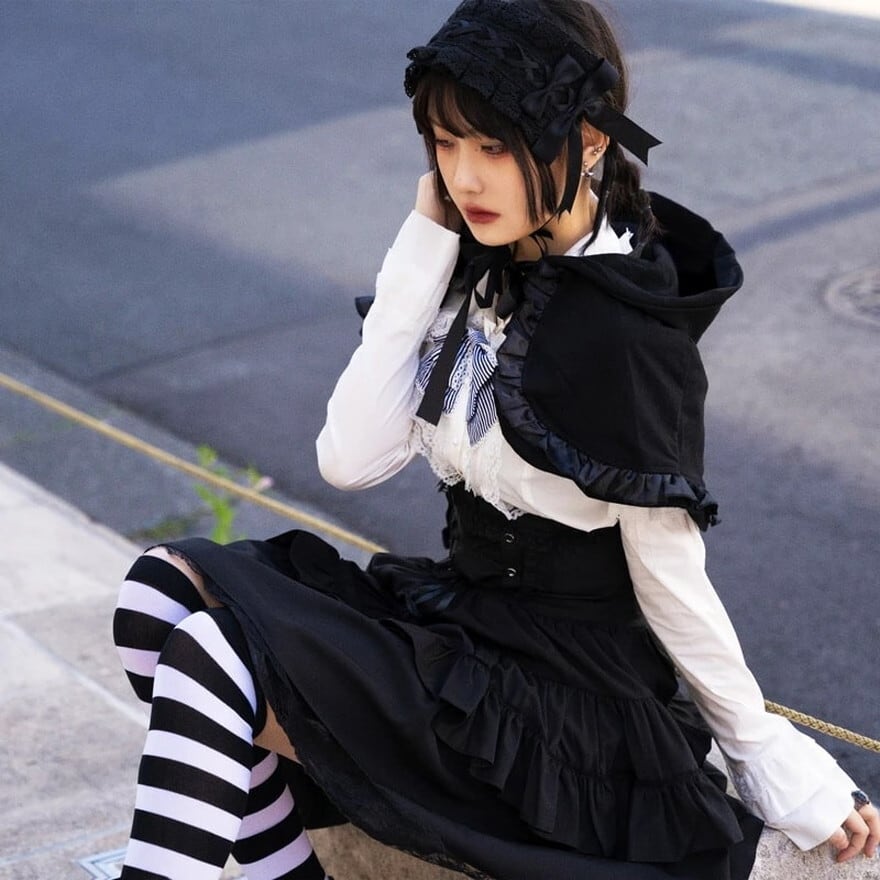 ブラウスやケープと合わせて原宿系鉄板のゴスロリスタイルに