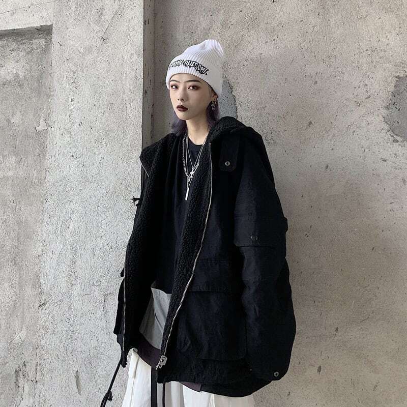 表面は大きめポケットにZIPアップ、裏面はもこもこのボア