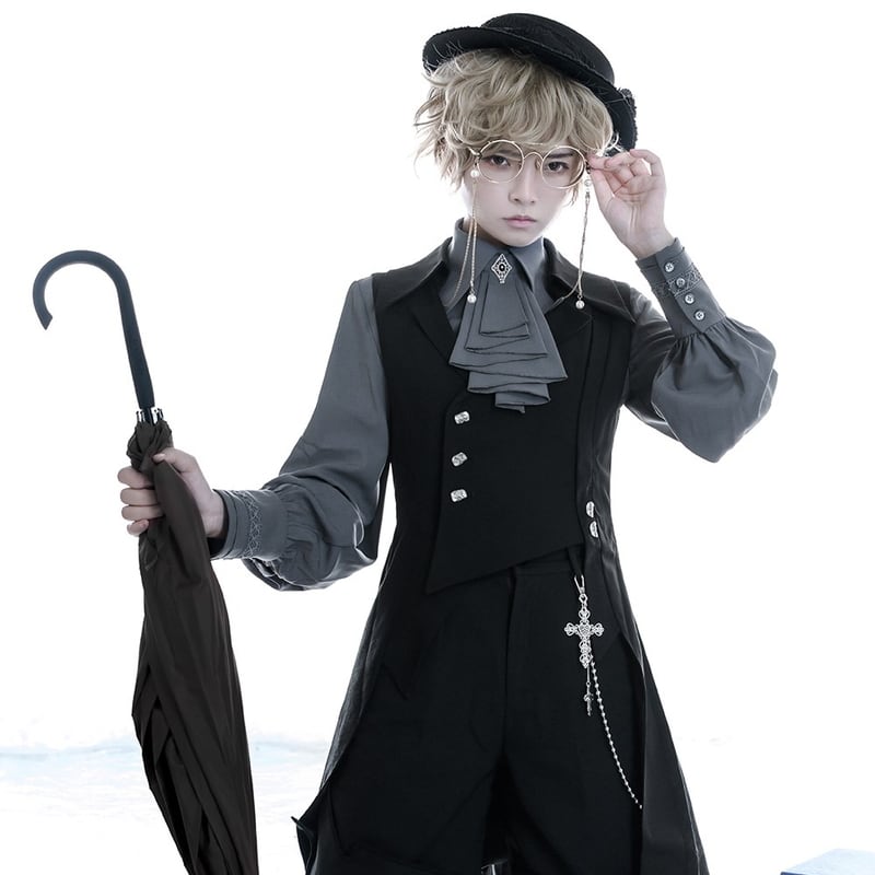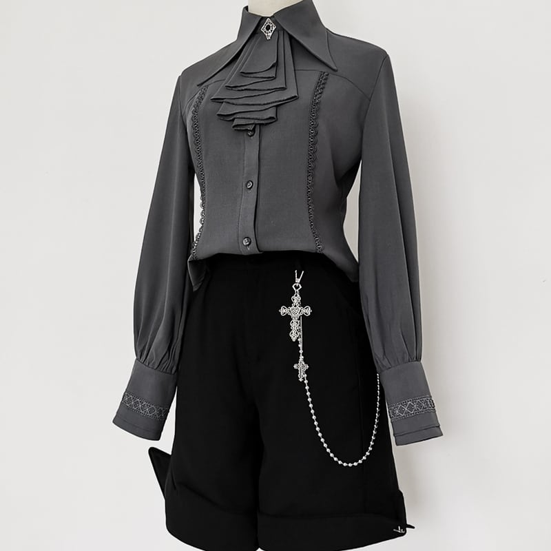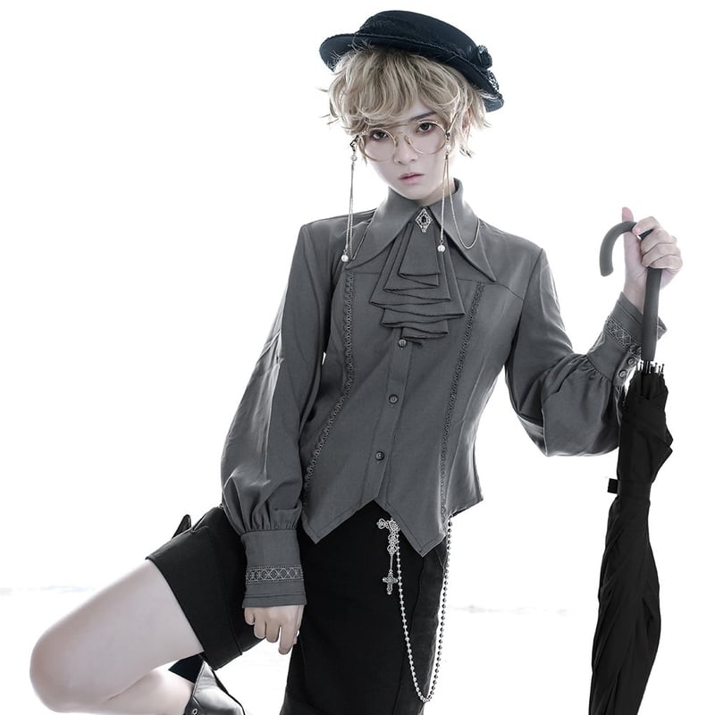 即納 グレー 王子系 皇子系 Princess Chronicles ブラウス シャボタイ付き 中世 ロリィタ