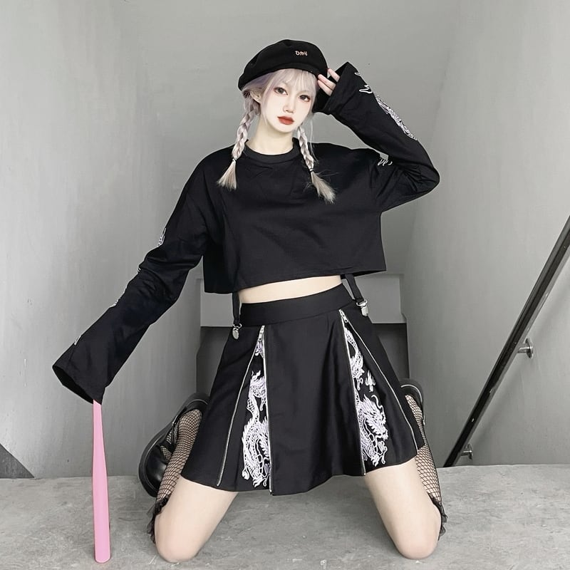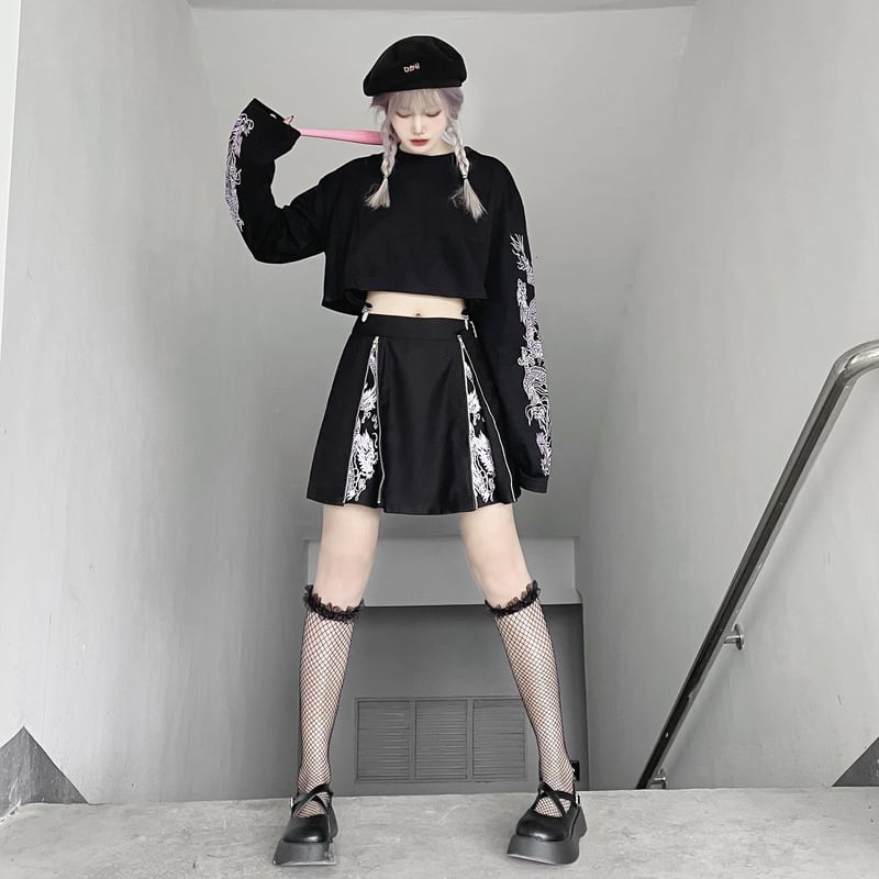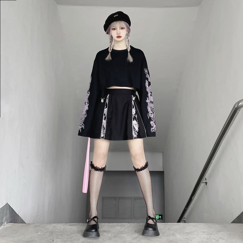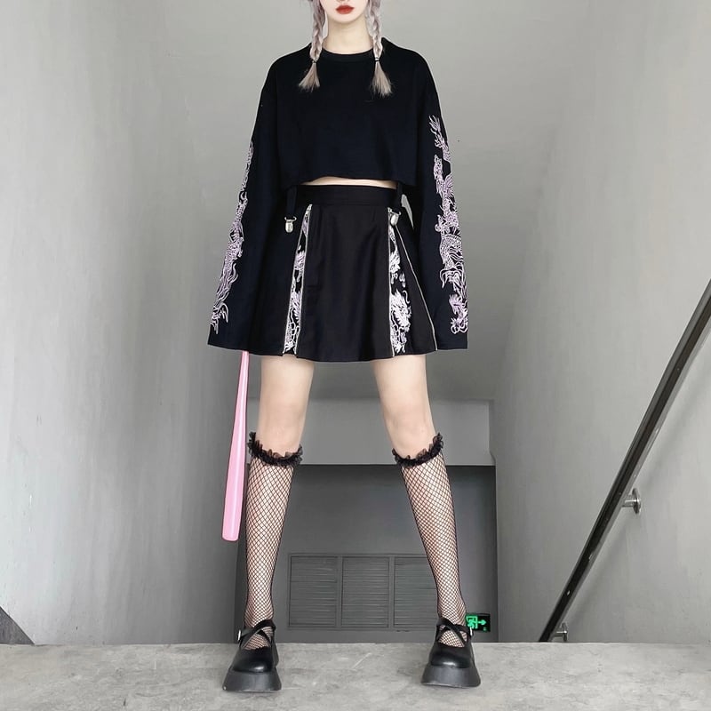 即納 ゴスロリ系 ミニスカ ZIPアップ ドラゴン刺繍 パンク ストリート系