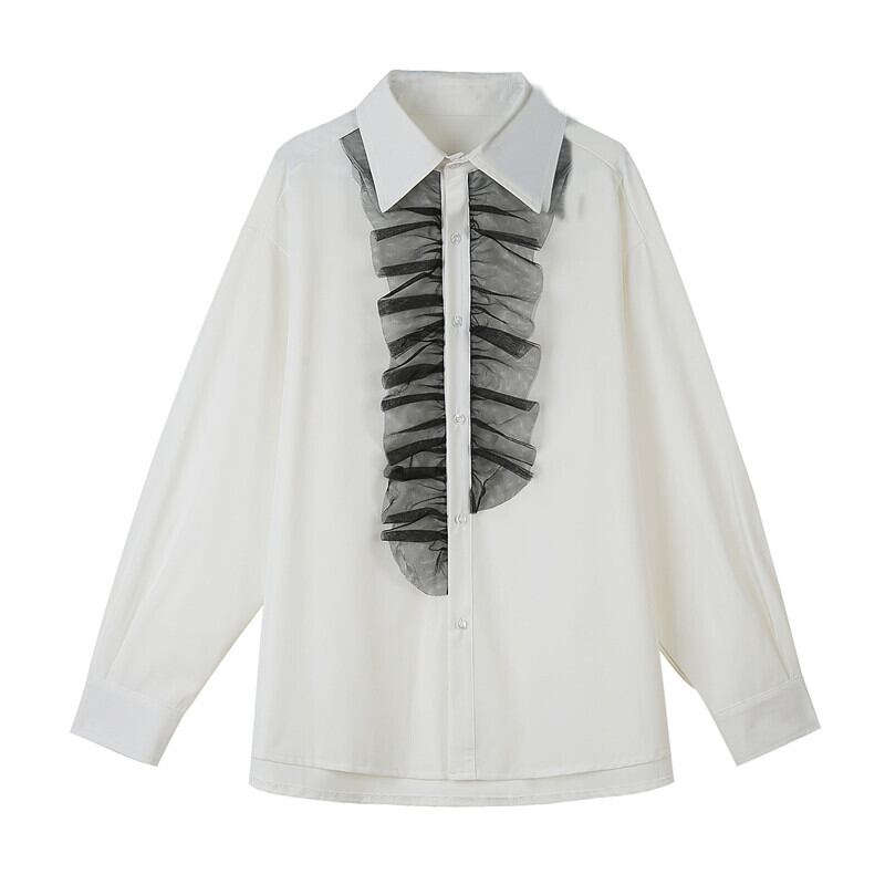 ブラックのフリルレースがおしゃれなメンズ長袖シャツ