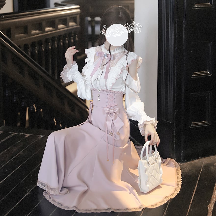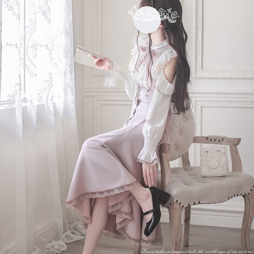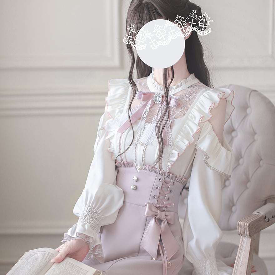 関連キーワード: #ロリータ #クラロリ #量産型 #ブラウス #フリル #レース #リボン #オープンショルダー #お嬢様 #上品 #エレガント #可愛い #白 #ピンク #推し活