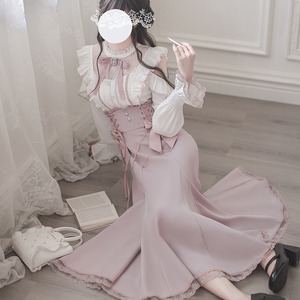 量産型ロリィタ クラシカル ブラウス フリル オフショル レース 長袖 胡桃木