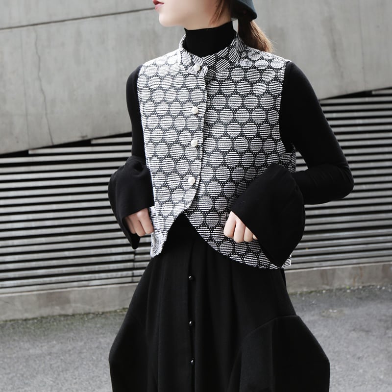 定番の白シャツや黒シャツともコーデがしやすいモノトーン、エフィクパールがおしゃれなベスト