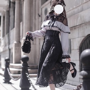 ロリィタ ブラウス ボウタイ付き クラロリ お嬢様 オープンショルダー 黒白 シースルー 胡桃木