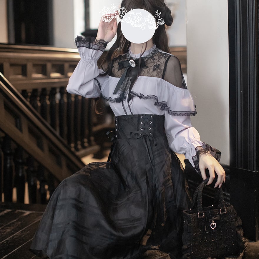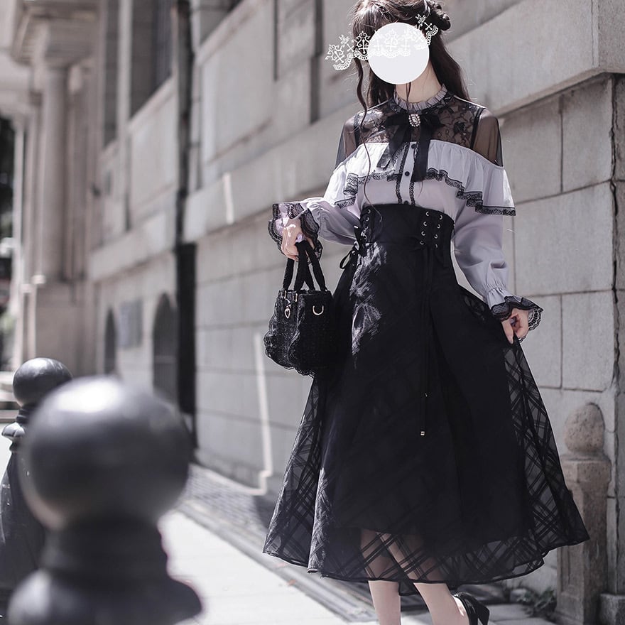 関連キーワード: #ロリータ #クラロリ #スカート #ロングスカート #コルセット #編み上げ #チェック #シースルー #黒 #上品 #エレガント #お嬢様