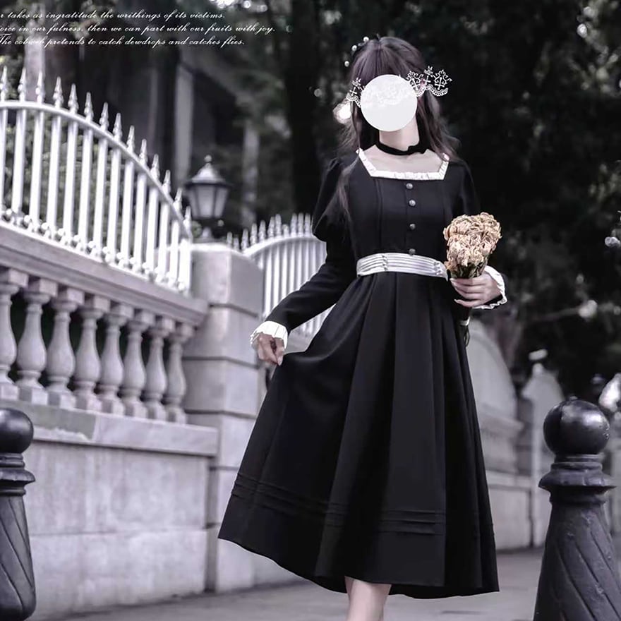 関連キーワード: #ロリータ #クラロリ #ワンピース #黒ロリ #モノトーン #ロング丈 #ジュリエット袖 #量産型 #お嬢様 #エレガント #クラシカル