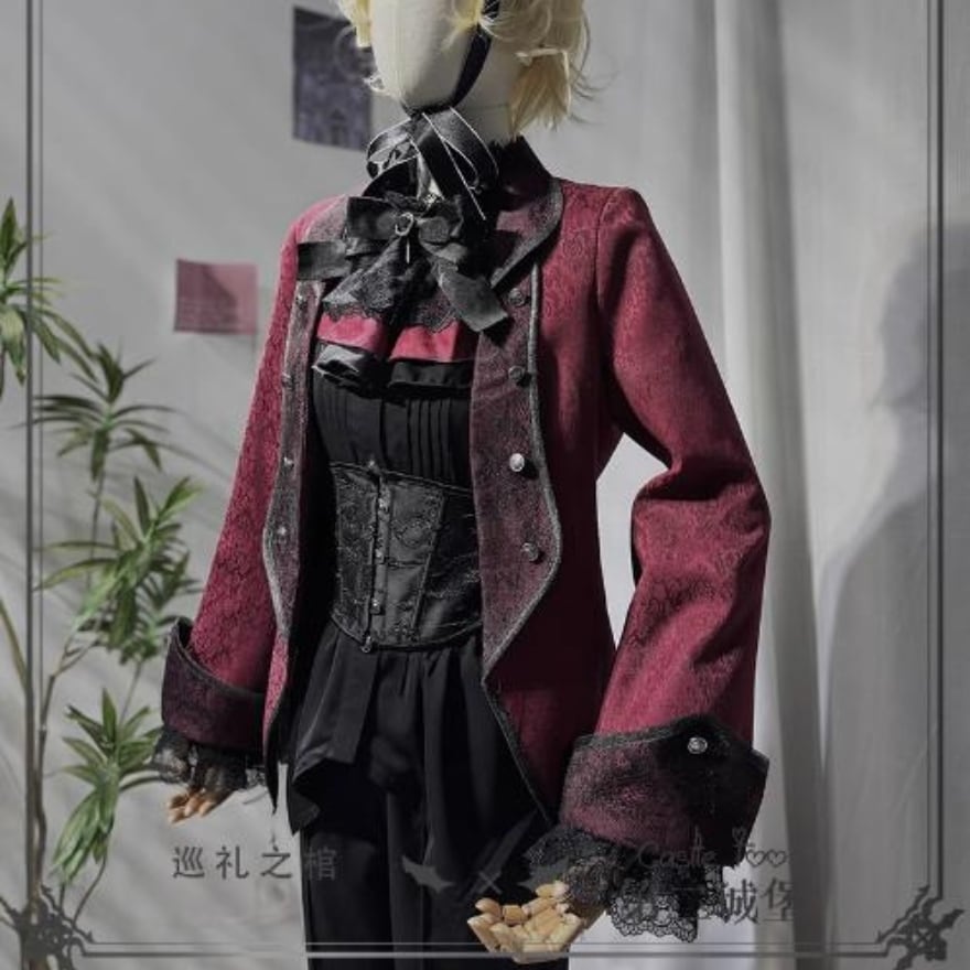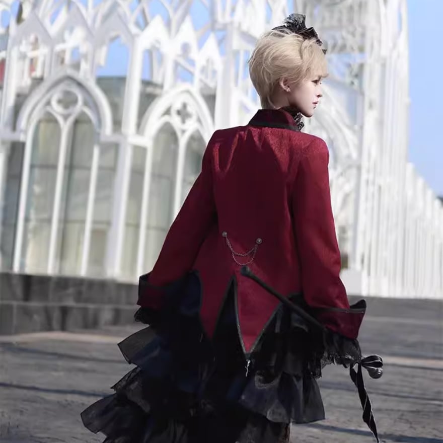 現品限り レッド 男装ジャケット CastleToo メンズロリータ ゴシック 男装カフェ 舞台衣装
