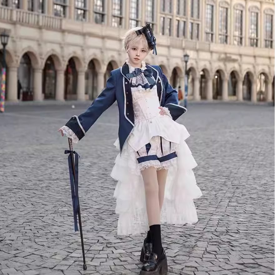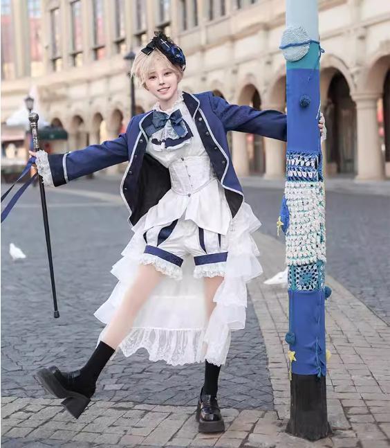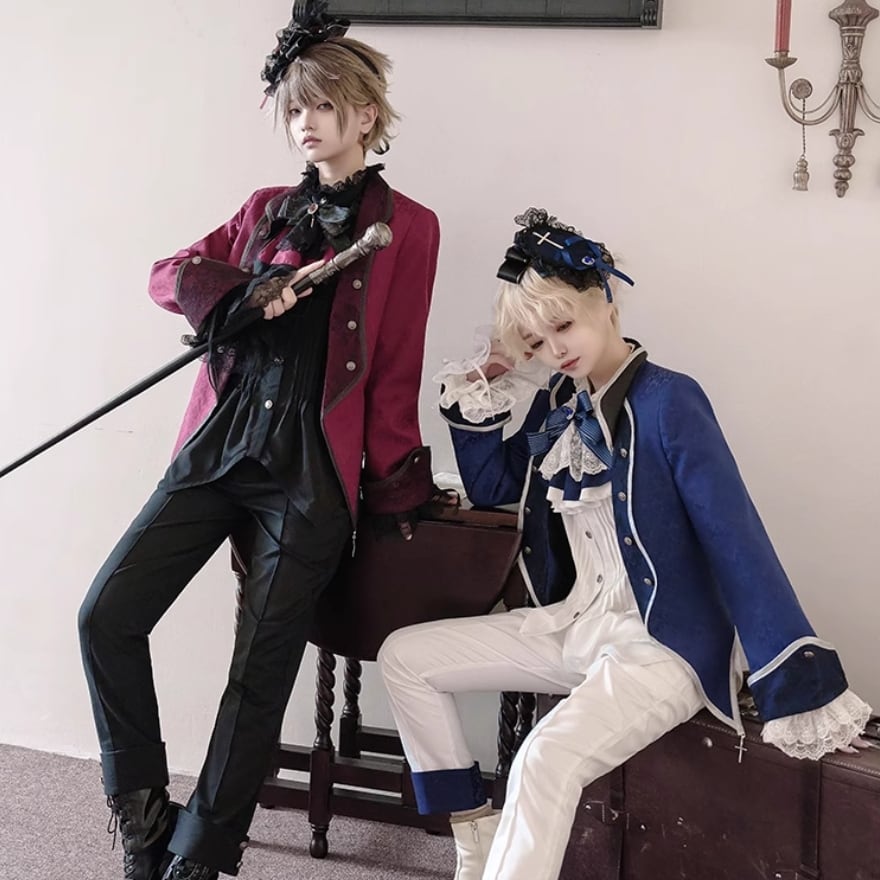 現品限り ブルー 男装ジャケット CastleToo メンズロリータ ゴシック 男装カフェ 舞台衣装
