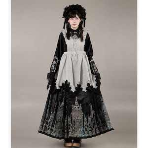 ゴスロリ 5点 セット 漢洋折衷 ロングスカート 大袖ブラウス ヘッドドレス 黒白 ロリィタ PUJI