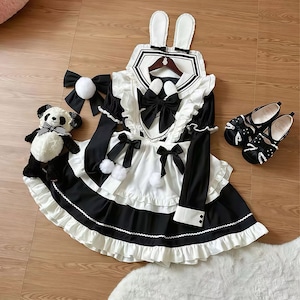 うさ耳付きの大きなセーラー襟が目を惹く、メイド風のワンピースです。