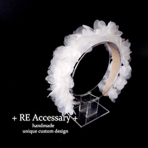 チュール素材の美しいヴェールと白い花々のカチューシャのセットです。