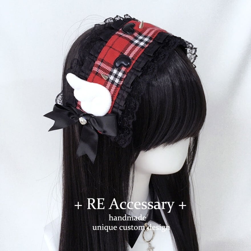 関連キーワード: #カチューシャ #ヘッドドレス #ロリータ #パンクロリータ #ゴスロリ #チェック柄 #タータンチェック #天使の羽 #エンジェルウィング #ハート