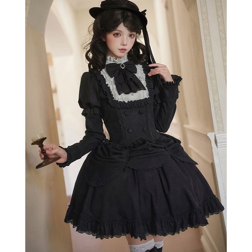 ゴスロリ レトロクラシカル ロングスカート 帽子付き 4点セット PUJI