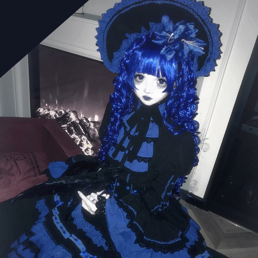 関連キーワード: #ロリータ #ゴスロリ #クラロリ #ボンネット #ヘッドドレス #ブルー #ブラック #レース #エレガント #クラシカル #ドーリー