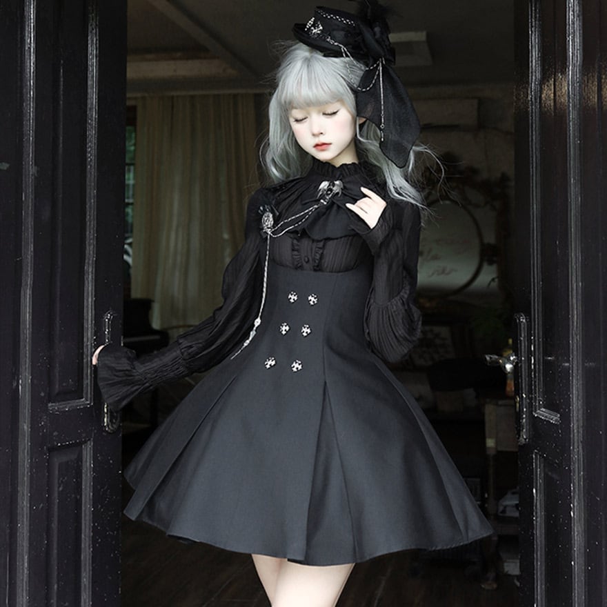 フリルたっぷりのブラウスを合わせれば王道のゴシック・ロリータスタイルに、シンプルなシャツを合わせればクールな執事風スタイルにと、インナー次第で様々な表情を見せてくれます。