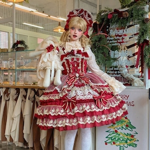ピンク、ボルドー、ブラックの3色展開で、繊細なレースと豪華なリボンがあしらわれたクラシカルロリータドレスです。