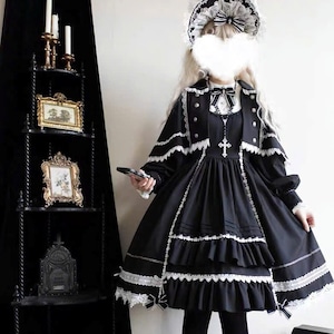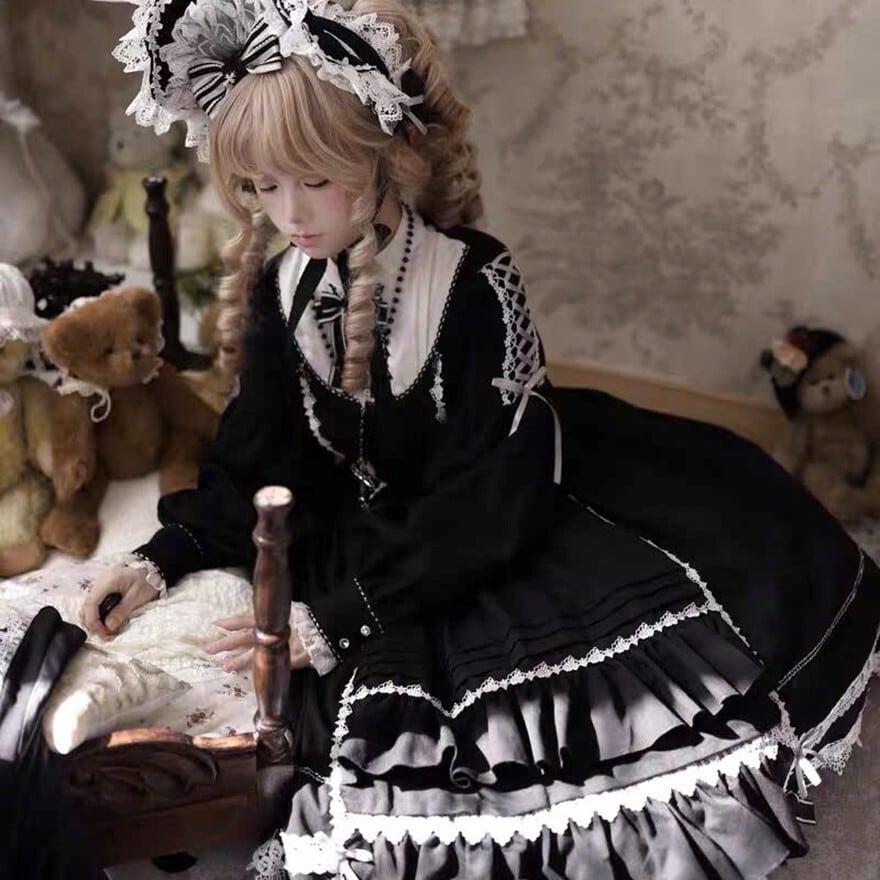 【予約商品 12月下旬出荷】 ゴスロリ クラシカルワンピース ネックリボン Doll系 ロリィタ