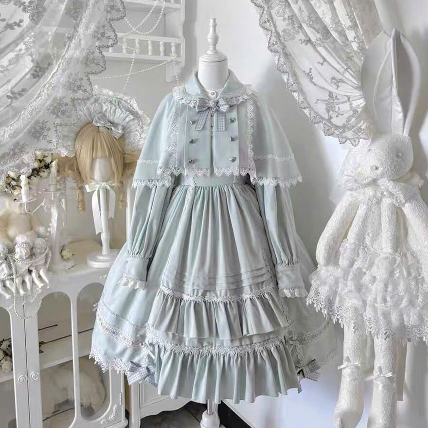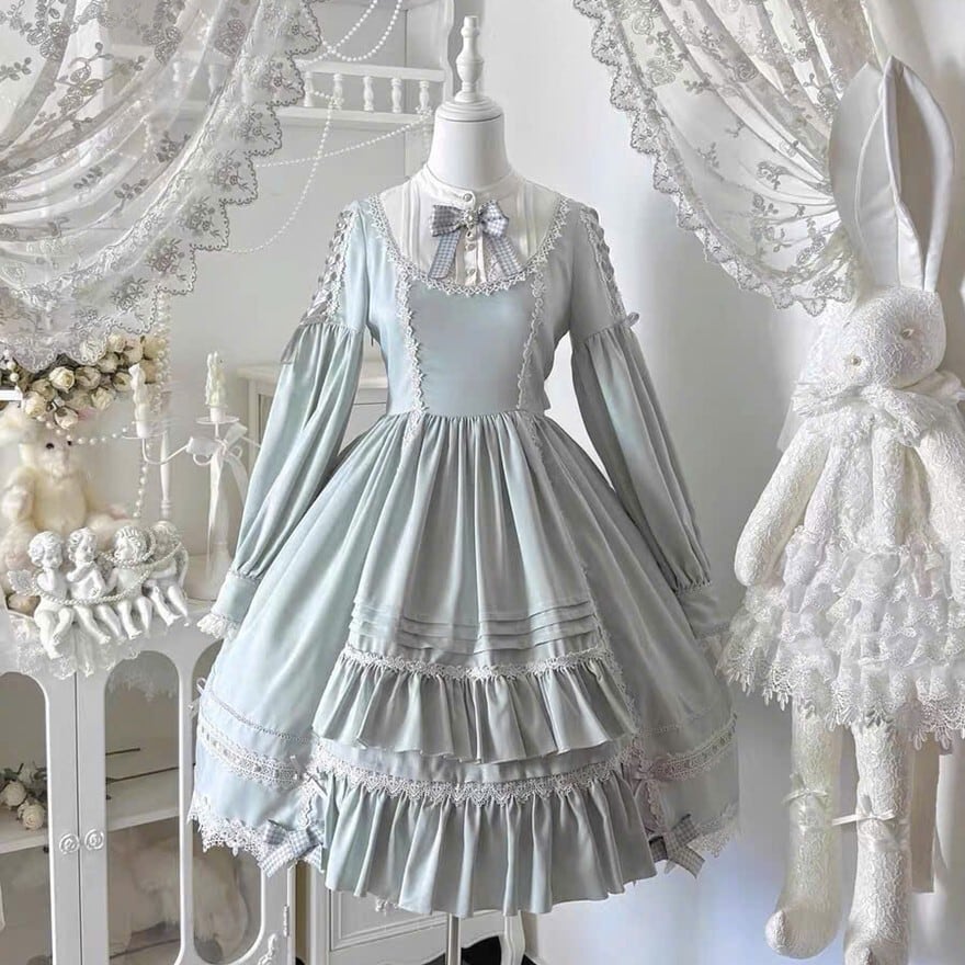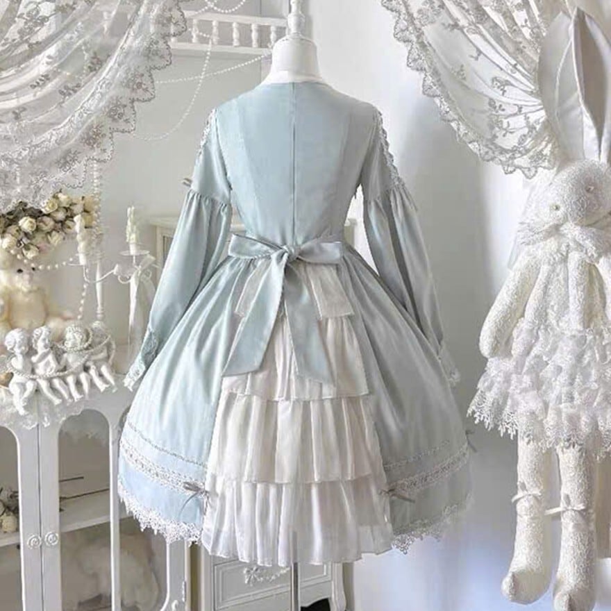 Aラインでふんわり広がるスカートシルエットと、パフスリーブ風の長袖デザインが特徴の、上品で可憐なクラシカルロリータワンピースです。