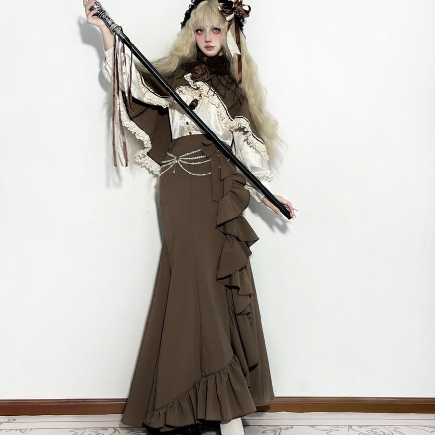 関連キーワード: #ロリータ #クラロリ #スカート #ブラウン #フリル #エレガント #シック #マーメイド #ロング丈