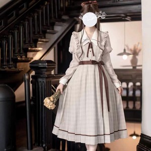 クラシカルロリィタ フレンチガーリー ワンピース ウエストベルト付きお嬢様風 胡桃木