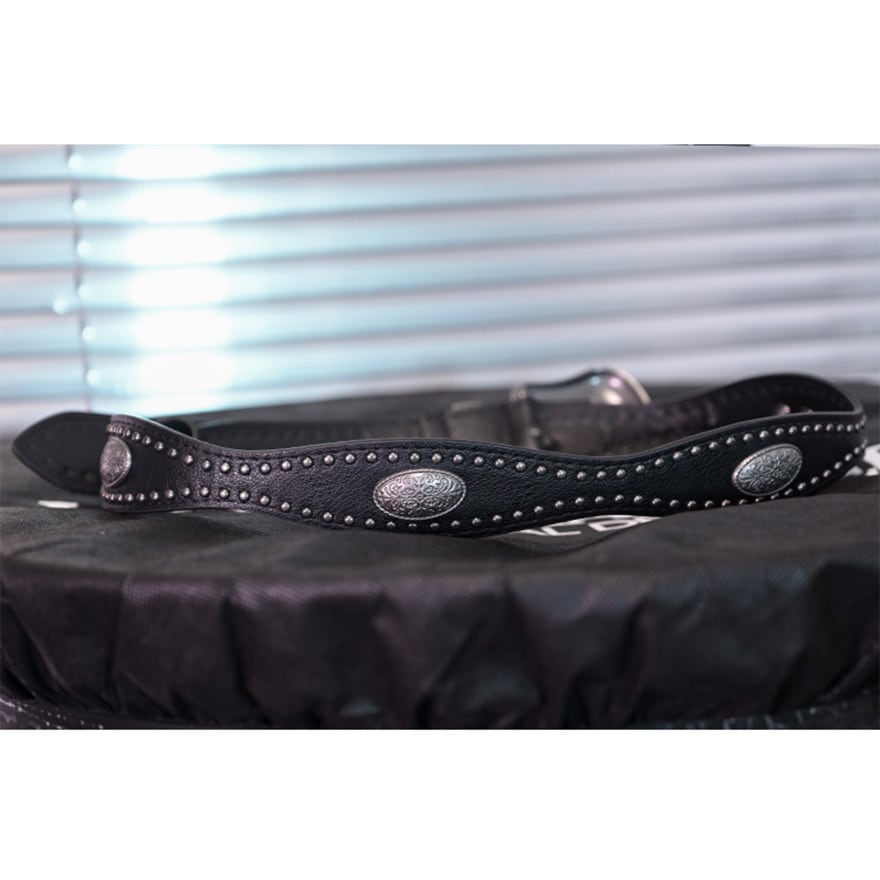 アンティーク調のシルバーバックルと、びっしりと打ち込まれたリベット(スタッズ)が特徴的なウエストベルトです。