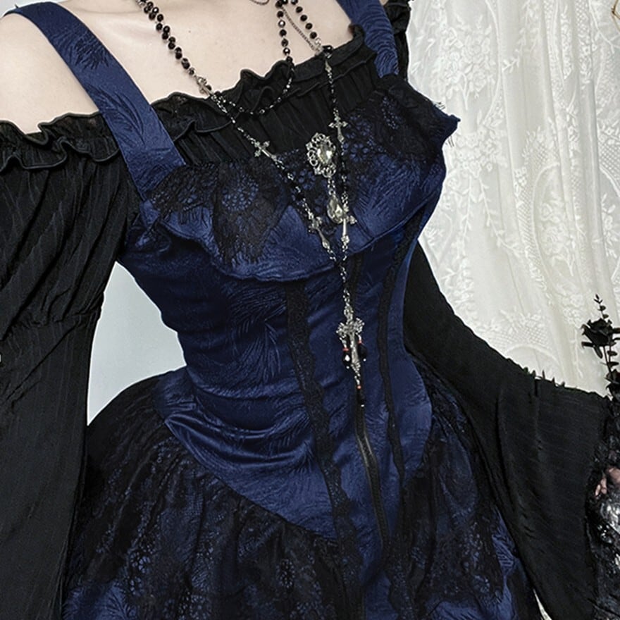 タイトなシルエットと、控えめなフリル、そして袖口のレースが、セクシーさの中に甘さも兼ね備えたゴシックまたはクラシカルな雰囲気を演出します。