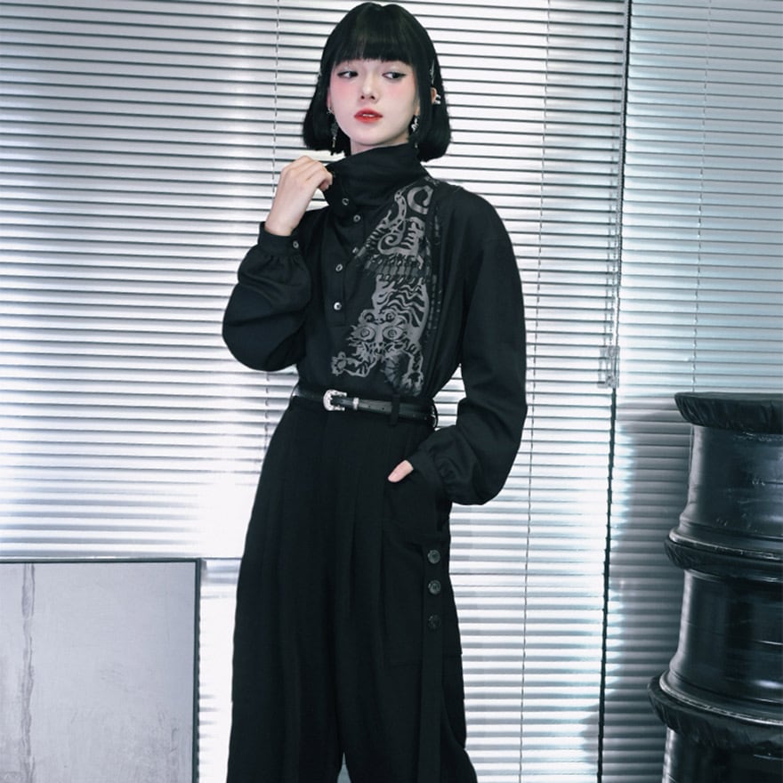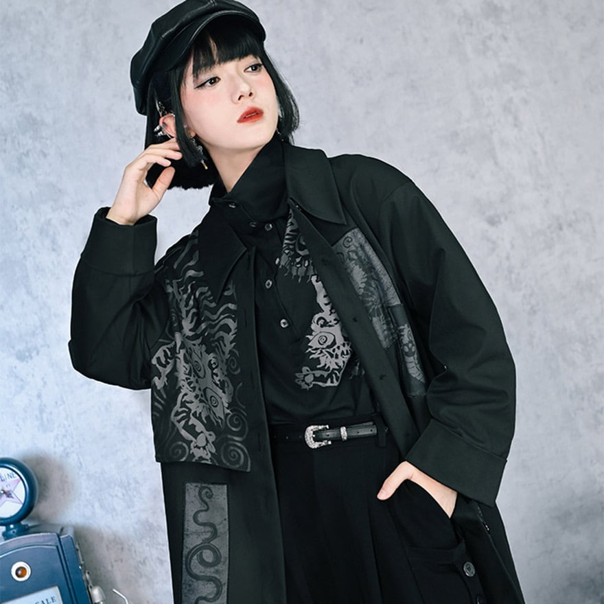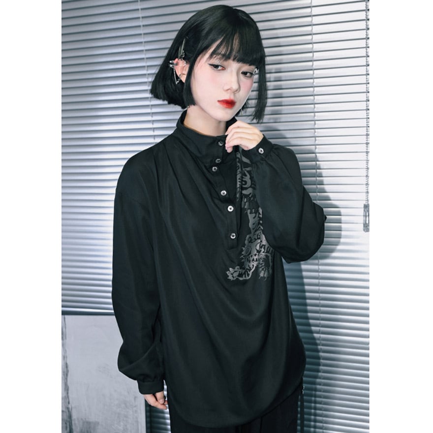関連キーワード: #中華ゴシック #長袖シャツ #サブカルファッション #モード系 #ストリートファッション #龍 #プリント #スタンドカラー #アシンメトリー #個性的 #ダークファッション