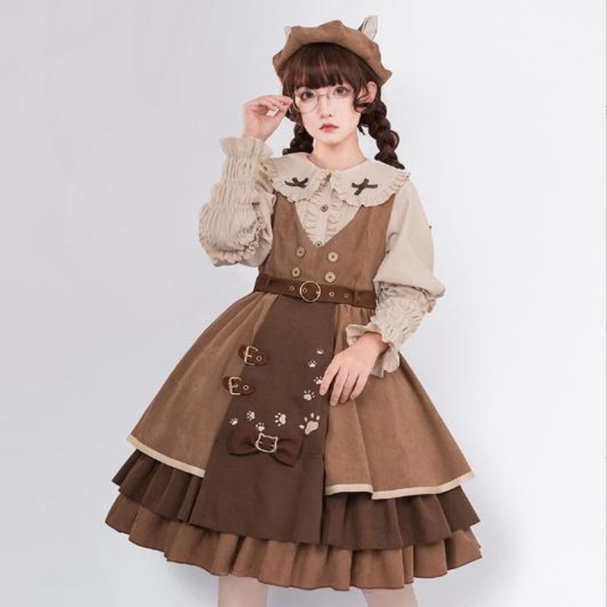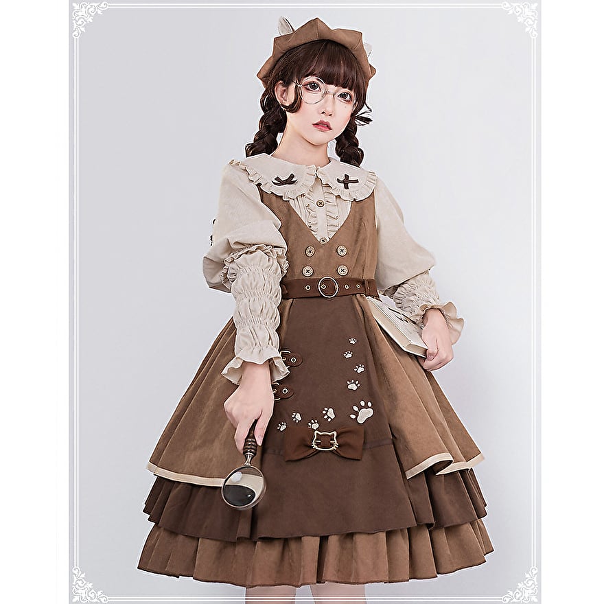 最短翌日即納 M 量産型 森ガール風 ネコ探偵 セットアップ 帽子付き レトロ ロリパン
