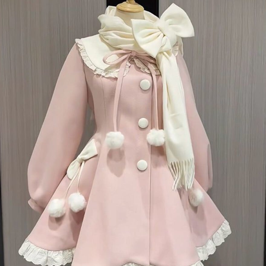 量産型 ゆめかわいい ロリィタ アウター コート ポンポン リボン スカーフ