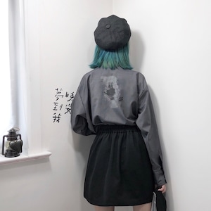 現品限り グレーS ゴスロリ 甘辛 シャツ ネクタイ付き バックプリント JKロリィタ