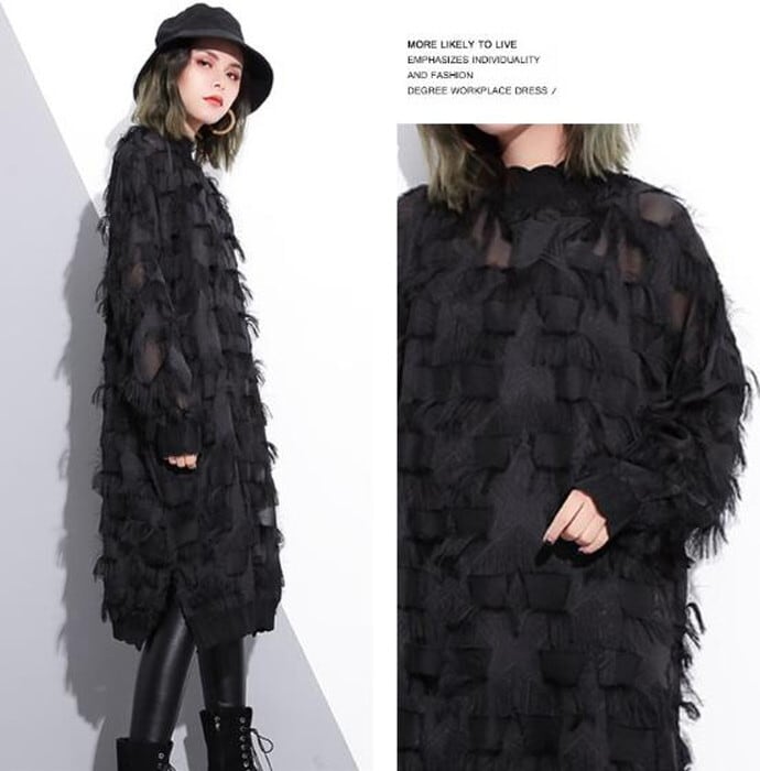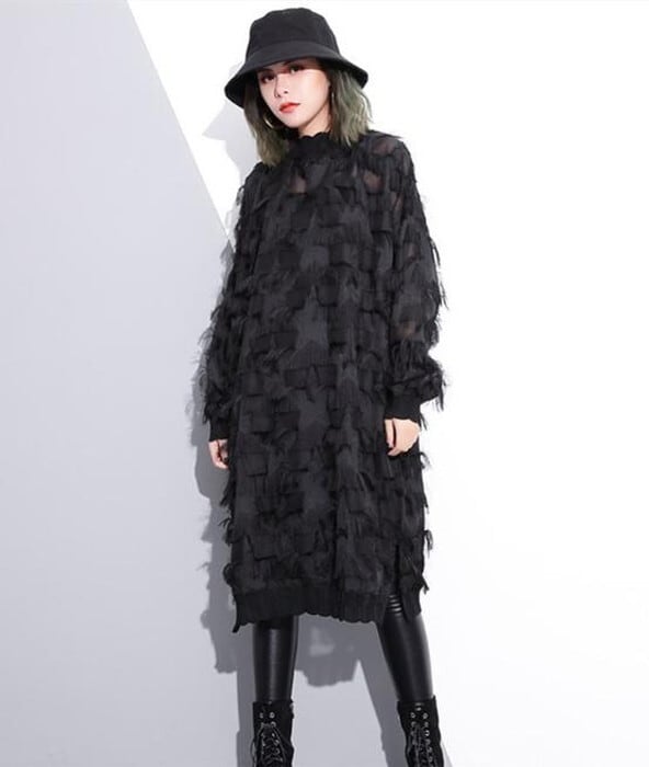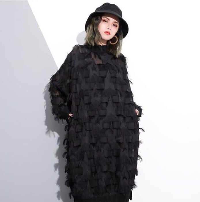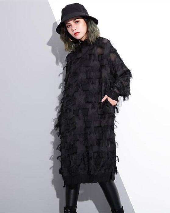 モード系 大人ゴシック ワンピース 膝下丈 黒コーデ 星 レース