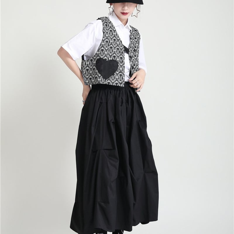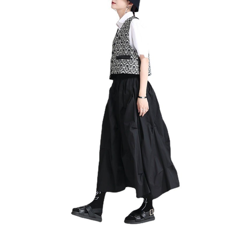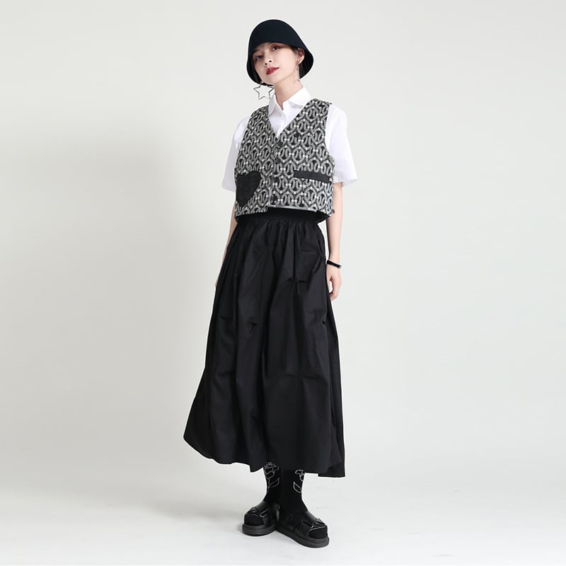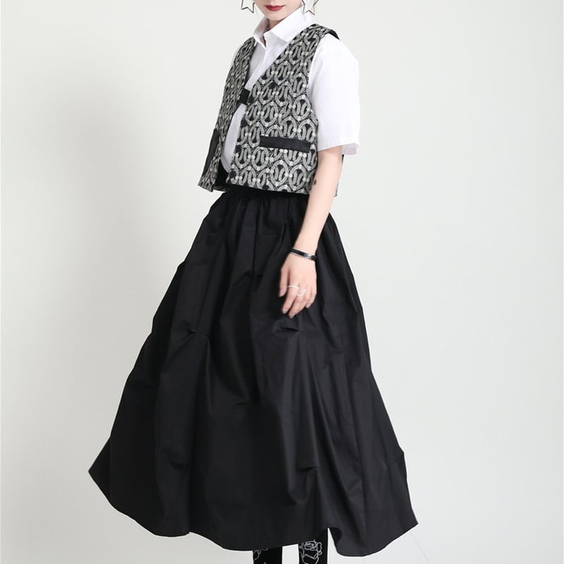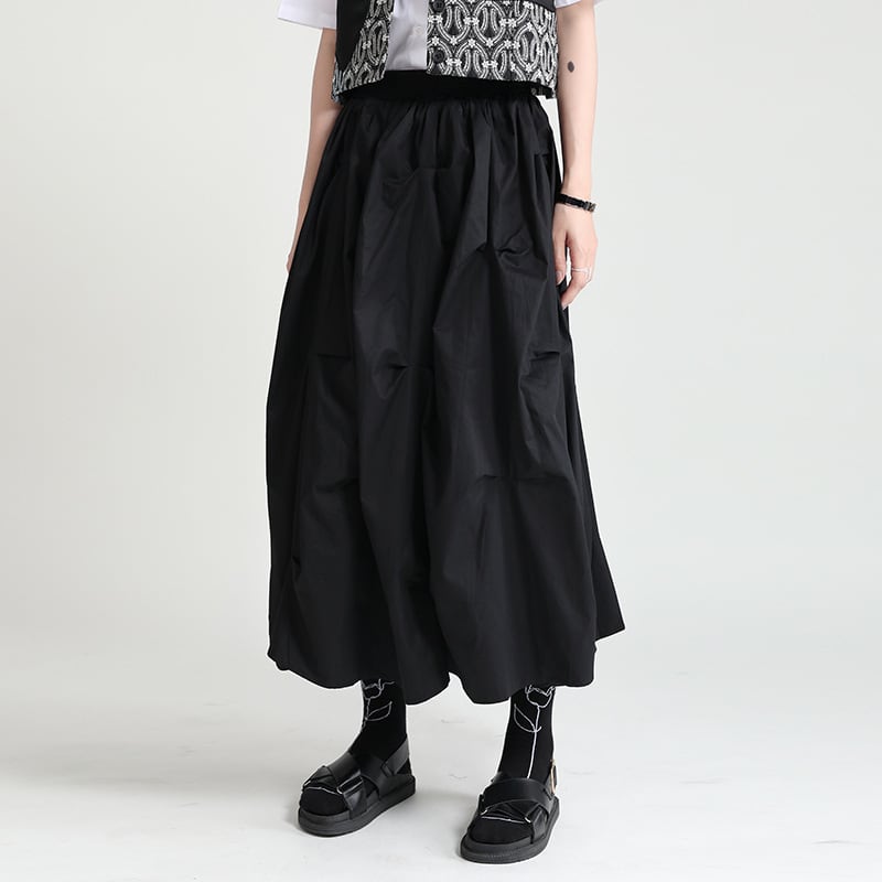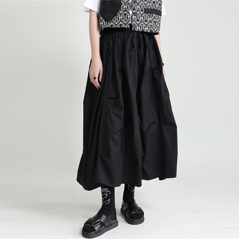 モード系 アシンメトリー ミドル丈 スカート ロングドレープ