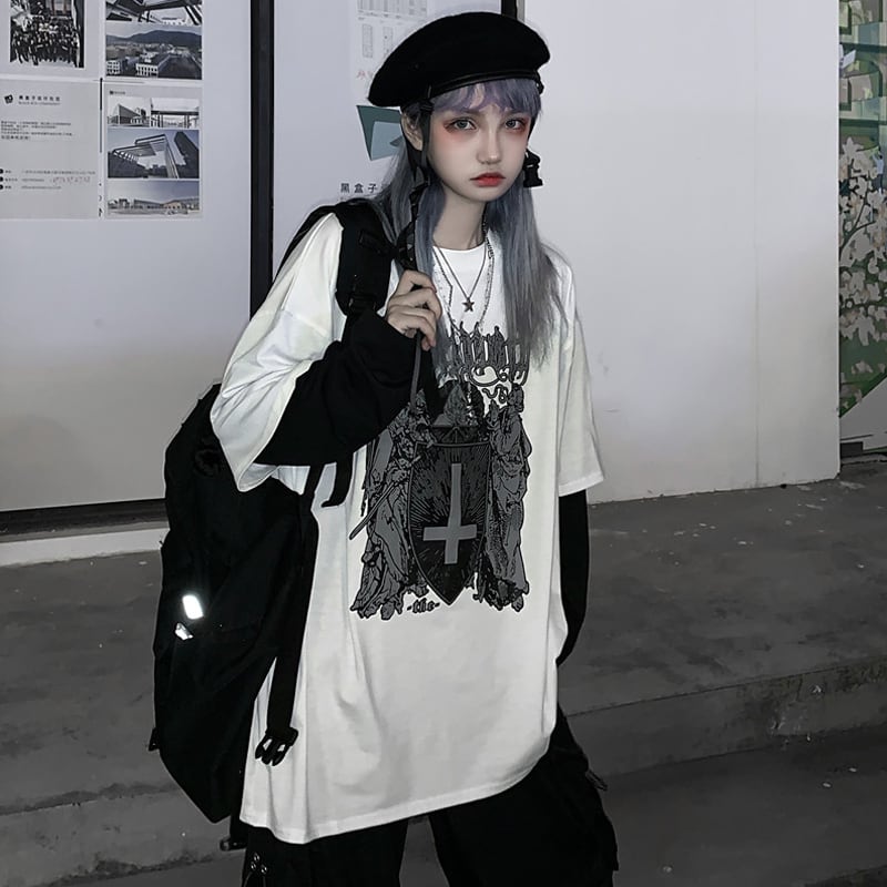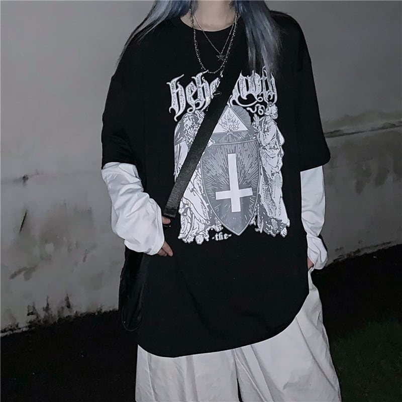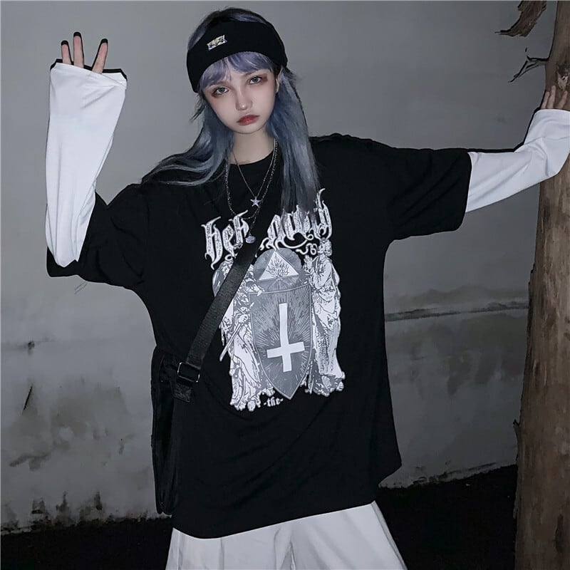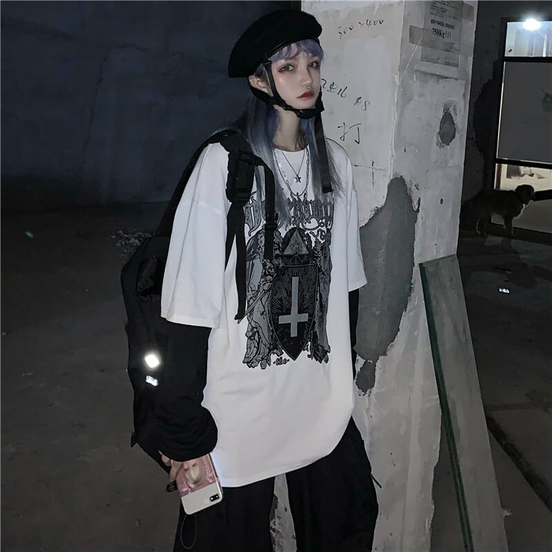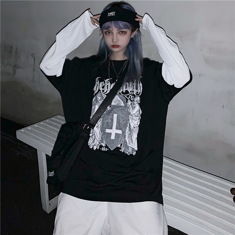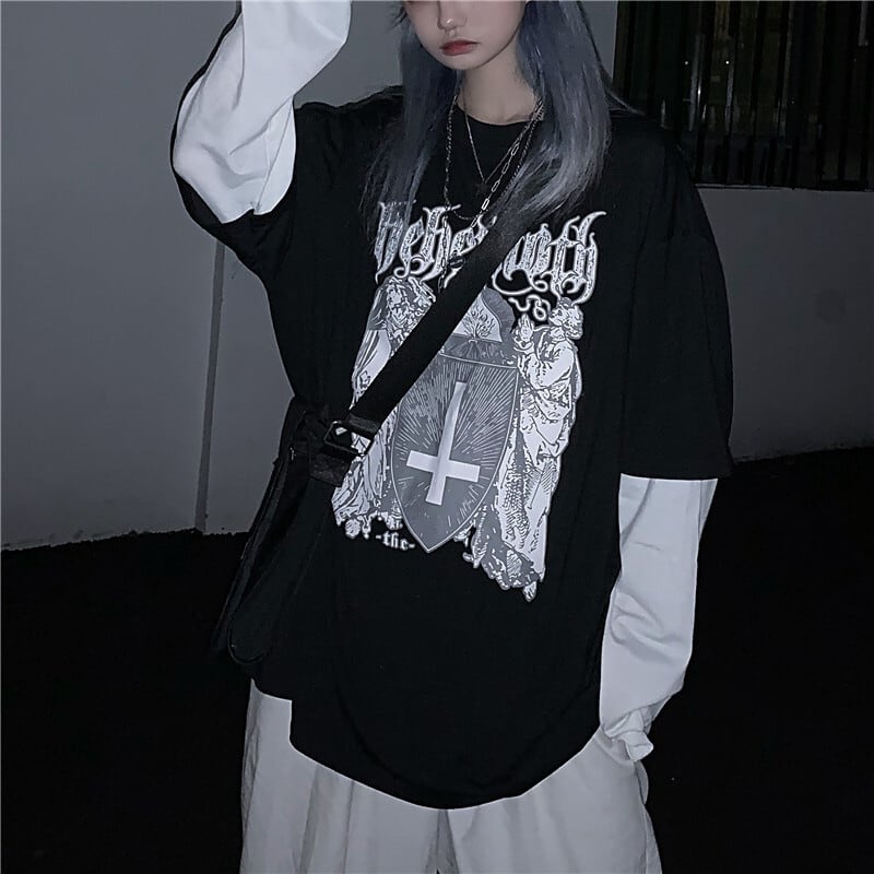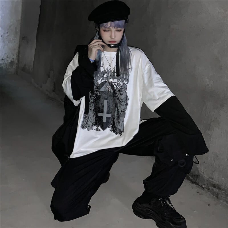 ゴスロリ フェイクツーピース Tシャツ 逆さ十字 プリント ライブ 参戦服