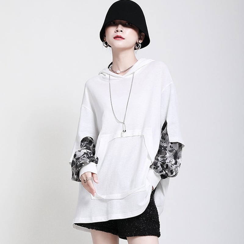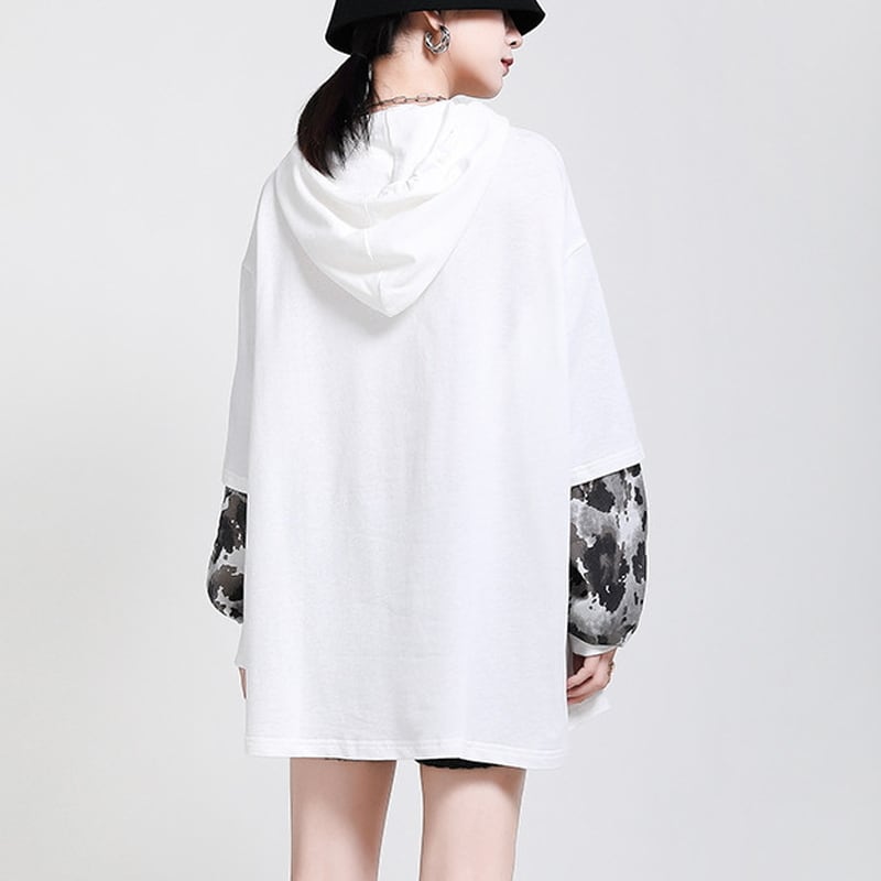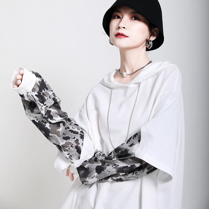 モード系 フェイク ツーピース パーカー 迷彩 大人 カジュアル