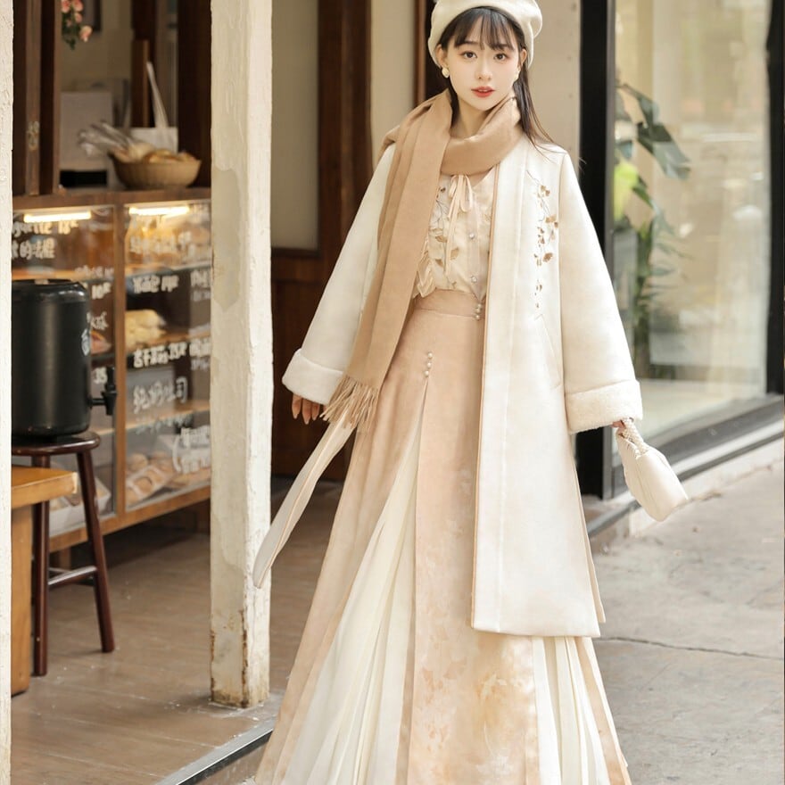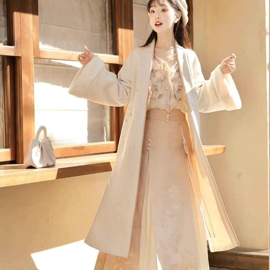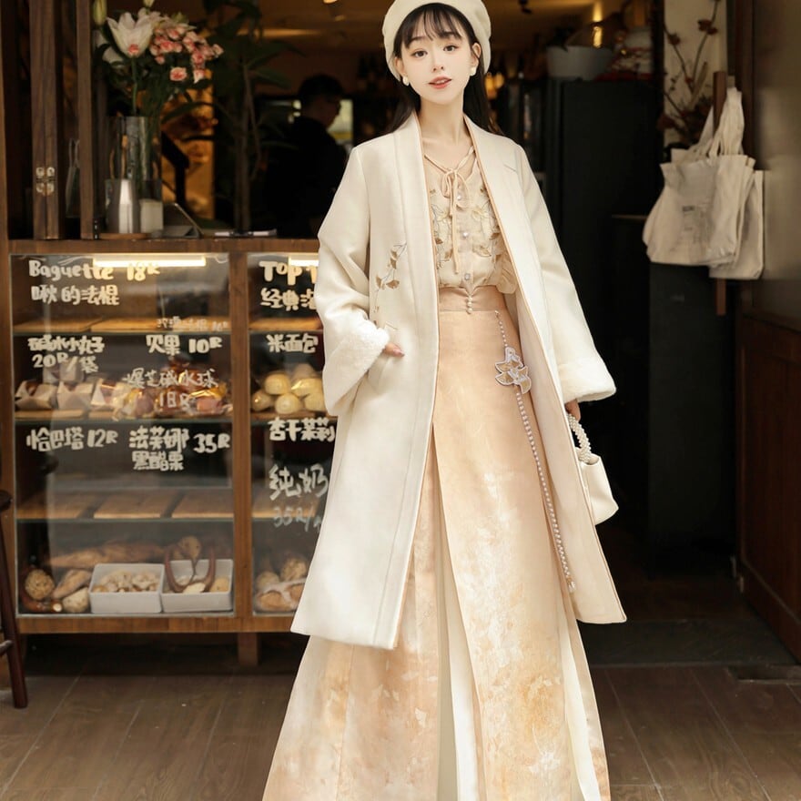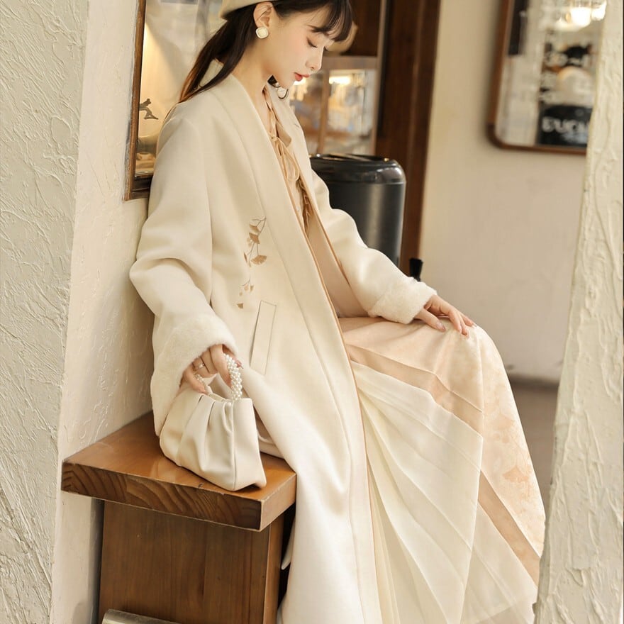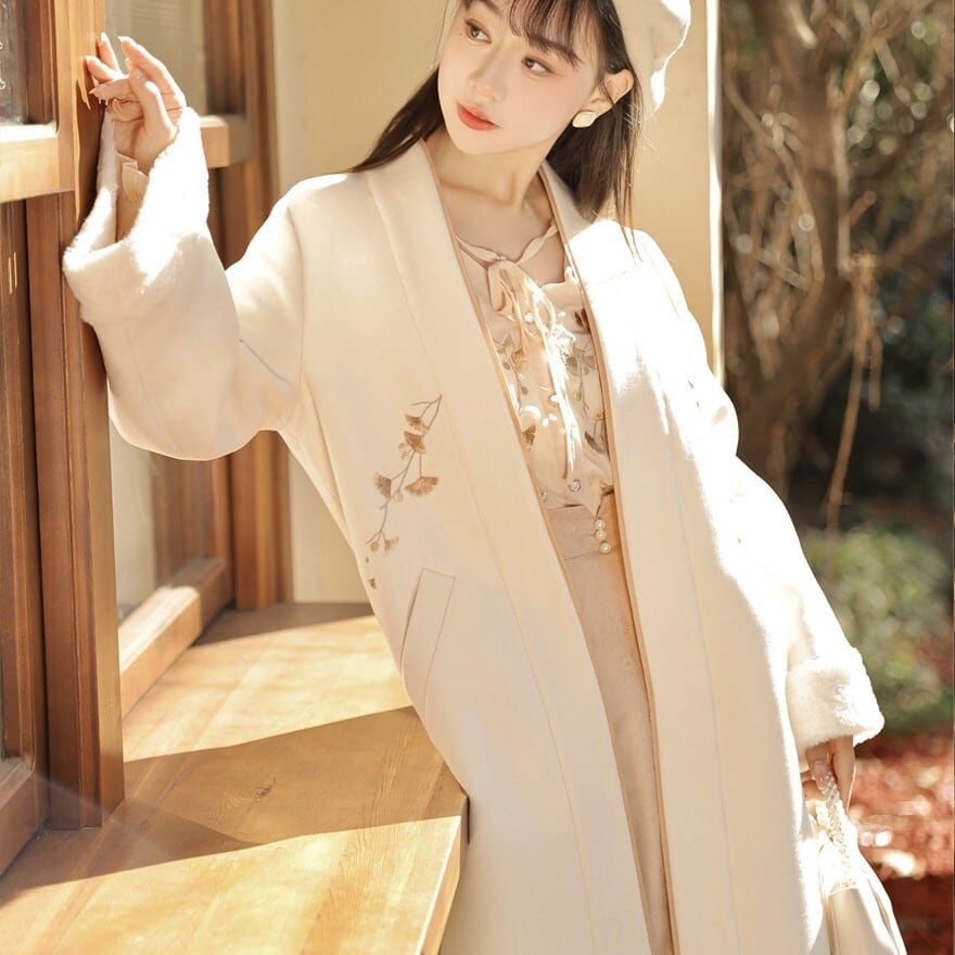 関連キーワード: #コート #ロングコート #ノーカラー #刺繍 #中華風 #漢服 #ロリィタ #クリーム色 #冬 #上品