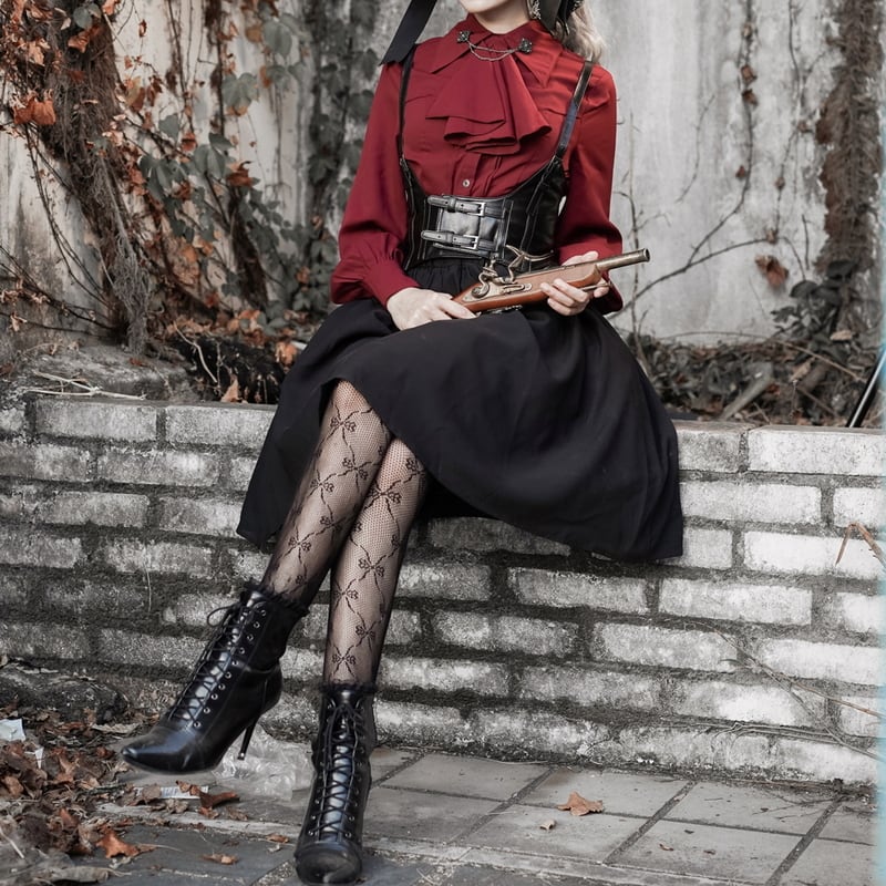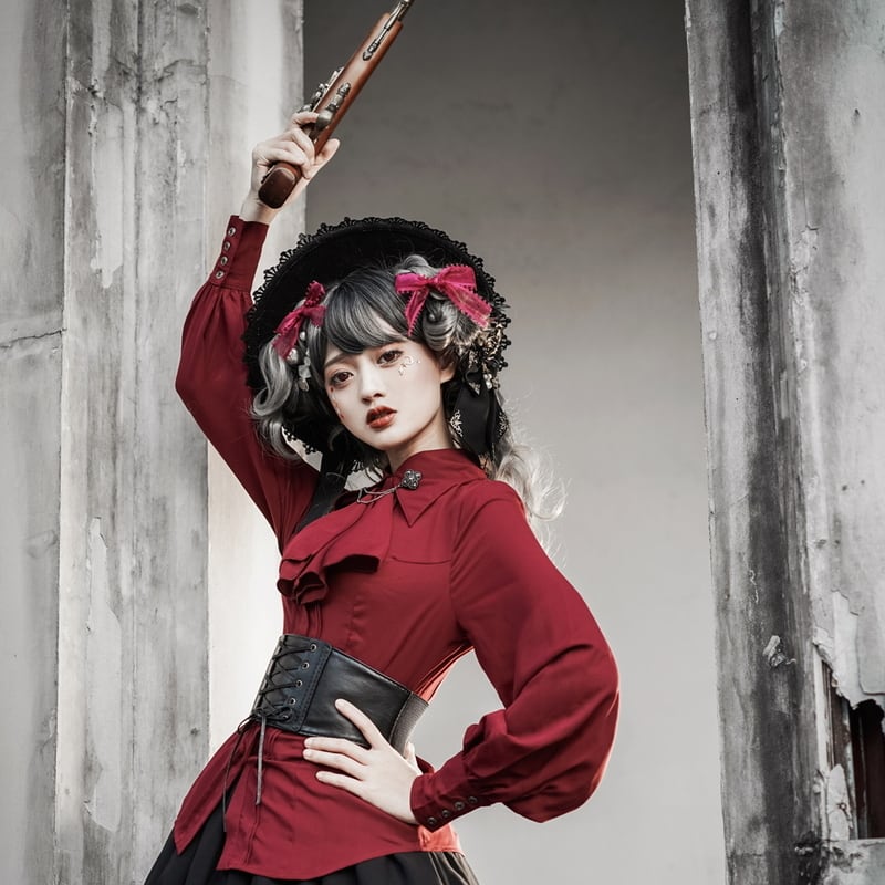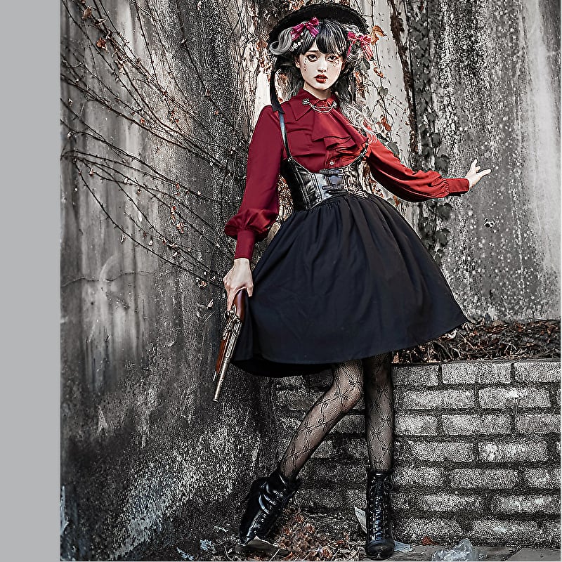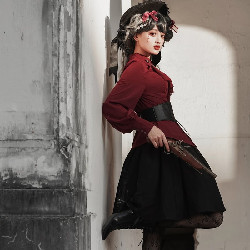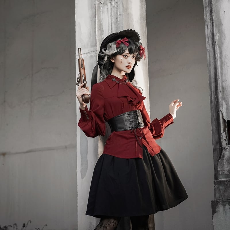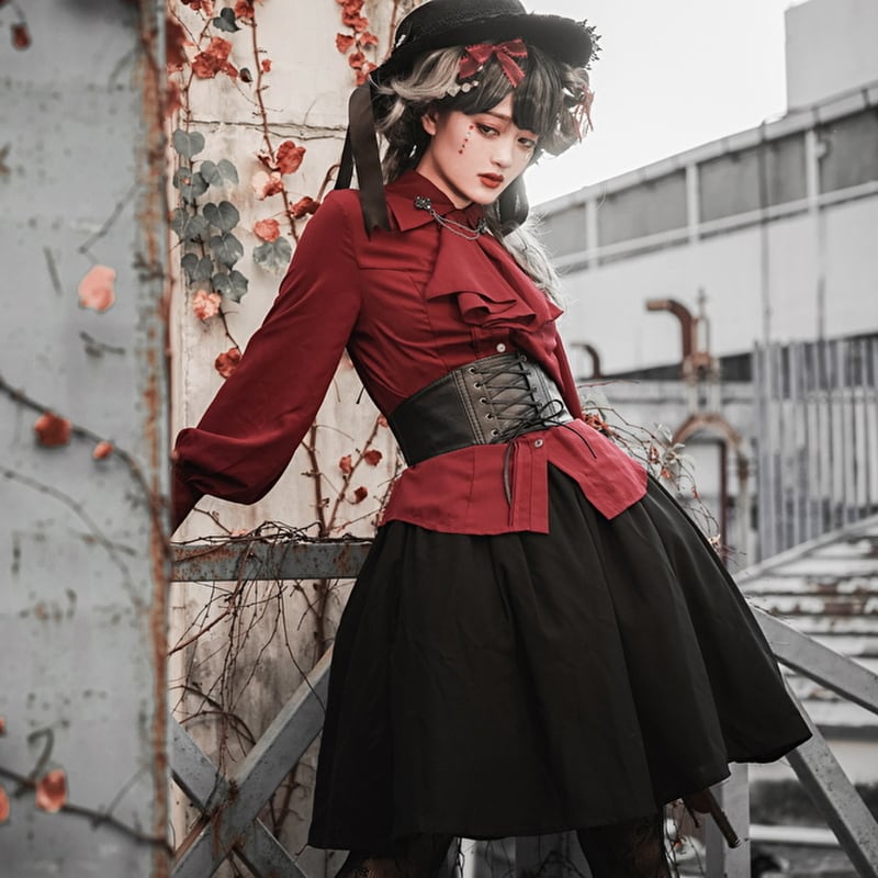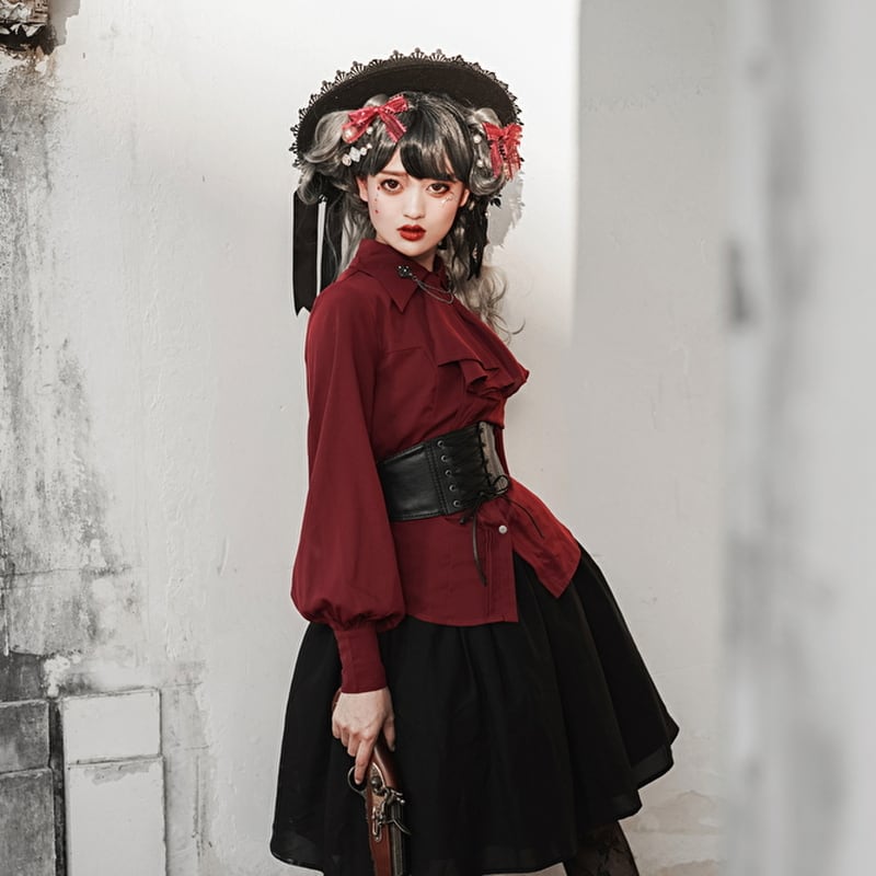 【現品即納 L 】ゴスロリ バーガンディ ブラウス ボウタイ アクセサリー付き