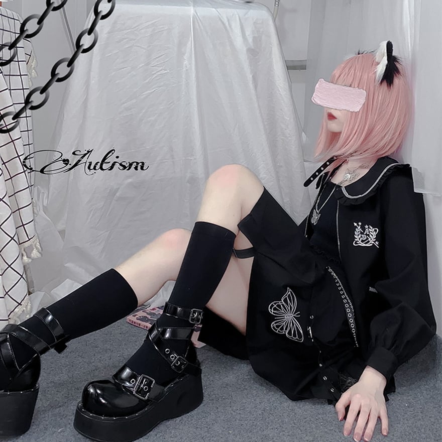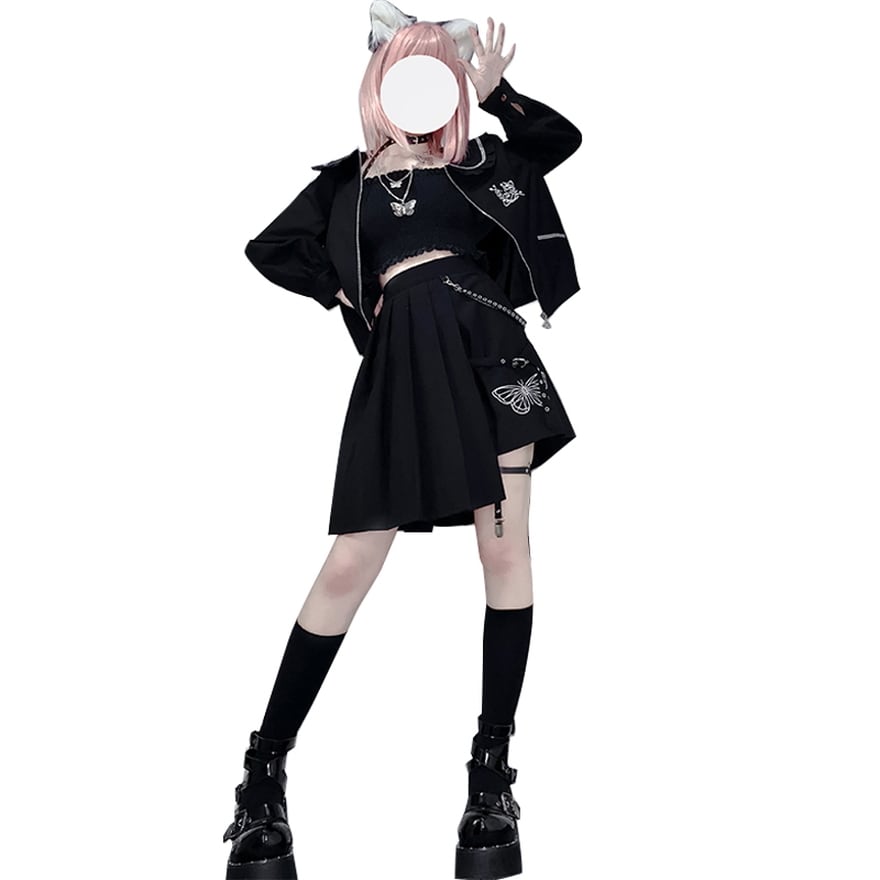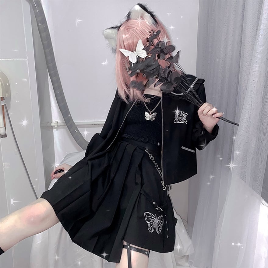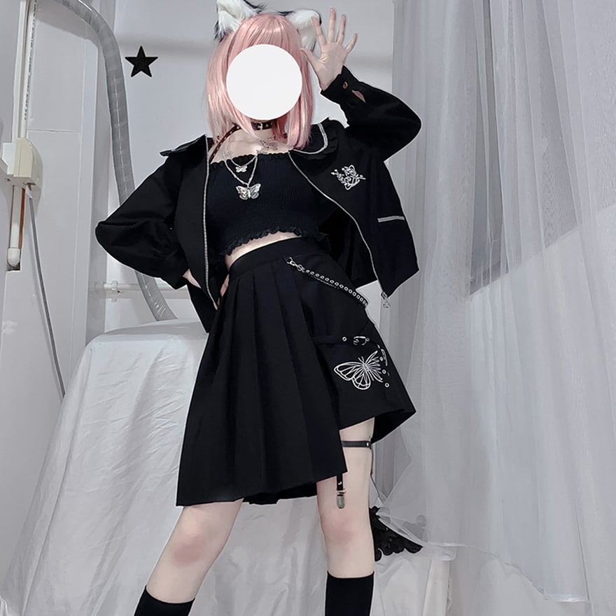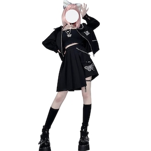 【現品限り】 ライブ 参戦服 中華ゴシック セットアップ butterfly 刺繍 Z世代 ストリート系