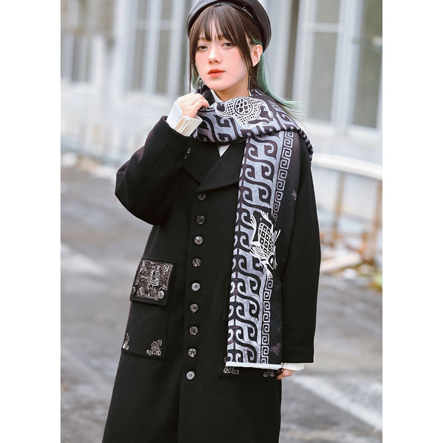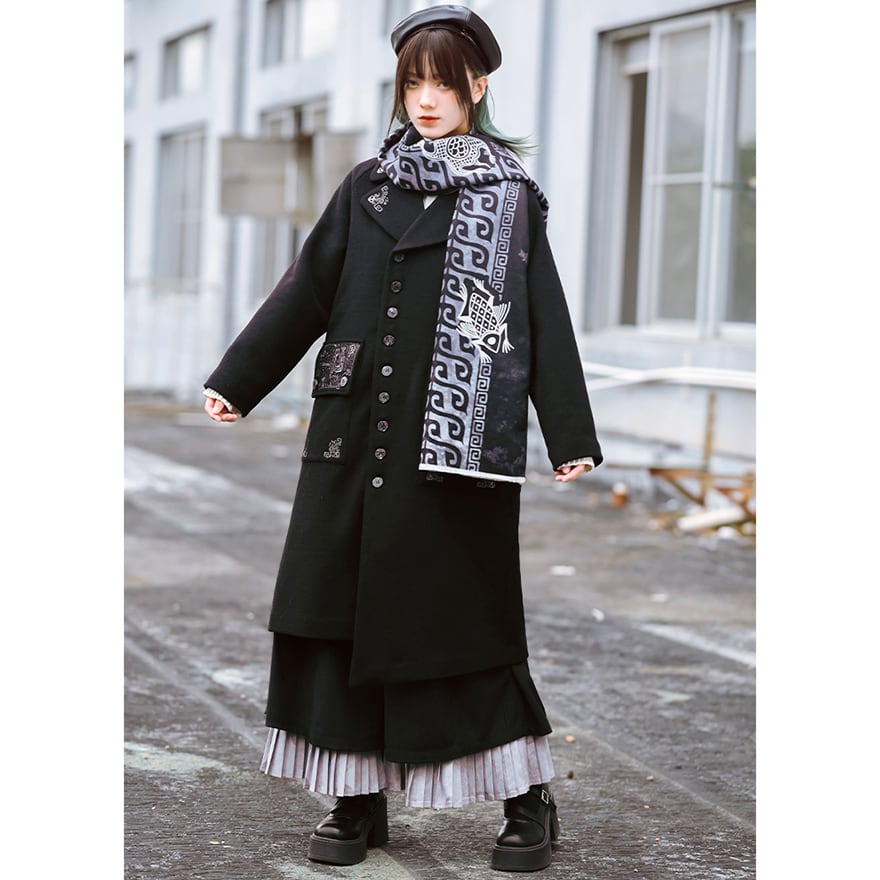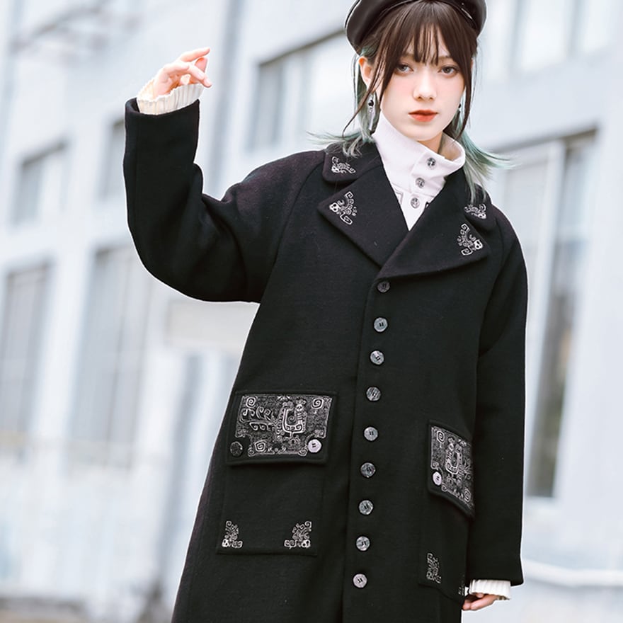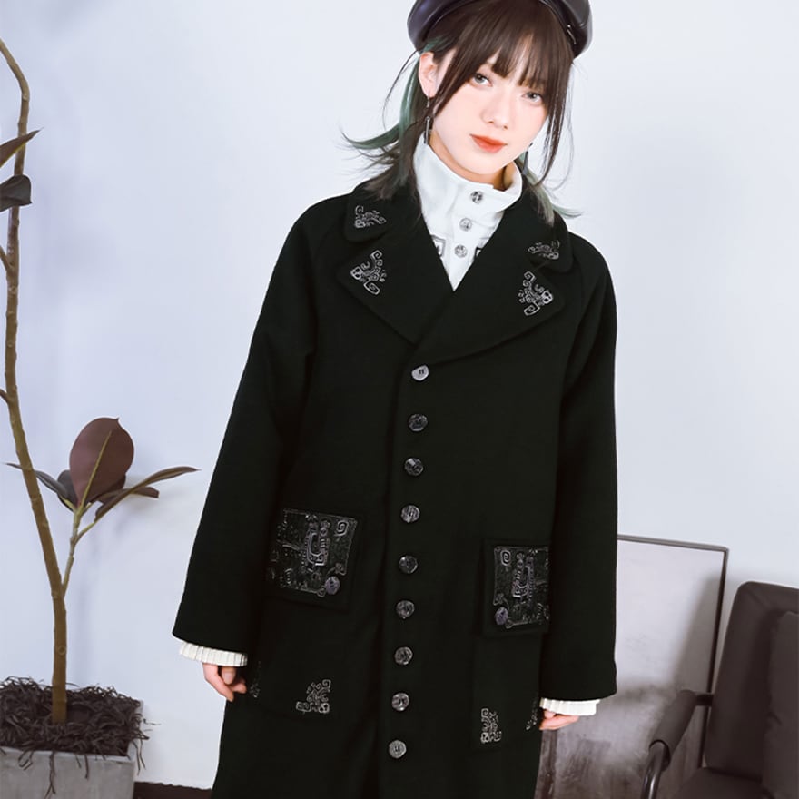 中華ゴシック ウールコート ロング丈 刺繍 ゴスロリ 古怪舎