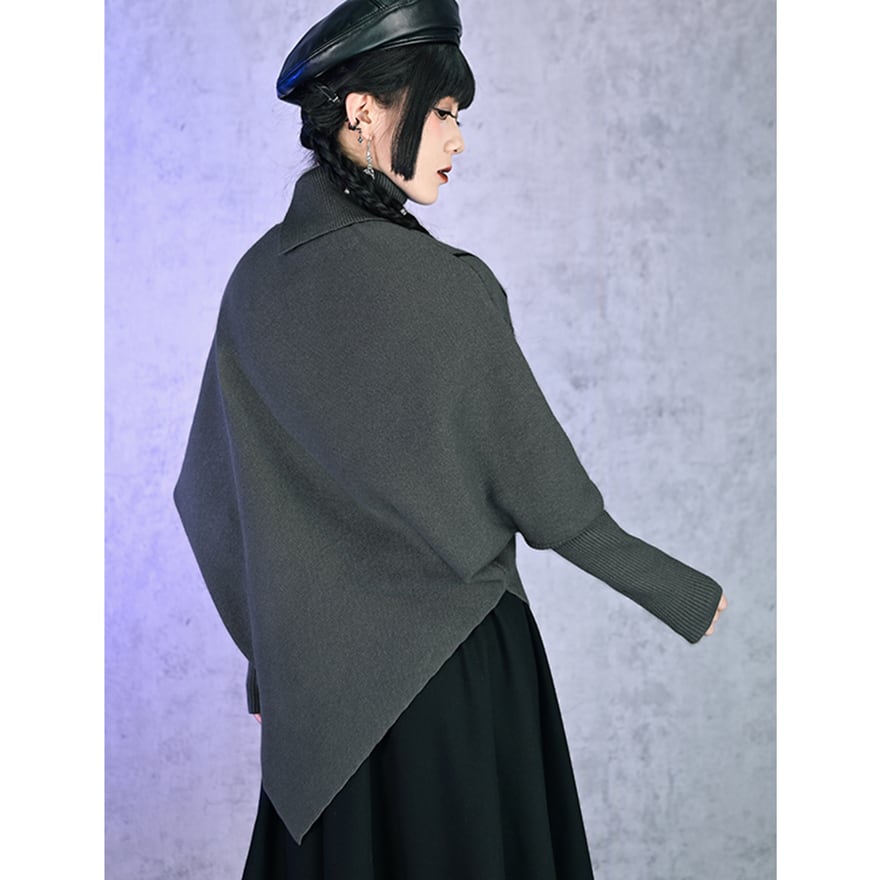 ポンチョのようなアシンメトリーなシルエットが、ユニークでおしゃれな雰囲気を演出します。