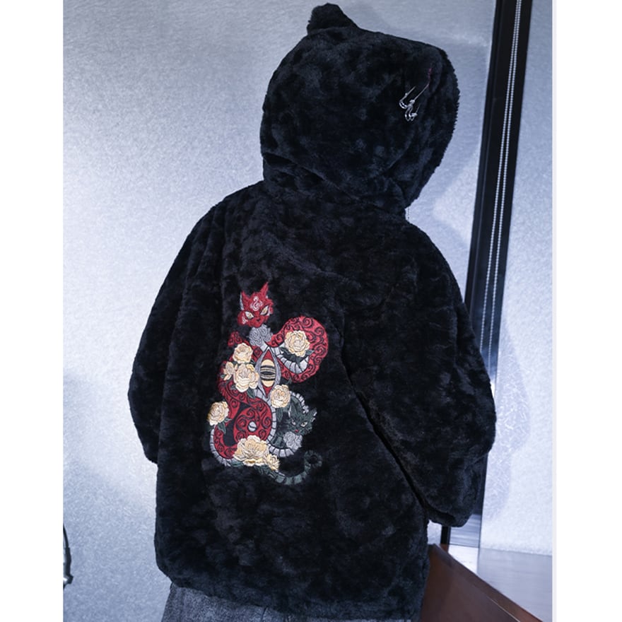 中華ゴシック猫耳 もこもこ ジャケット チャイナ刺繍 ゴスロリ 古怪舎