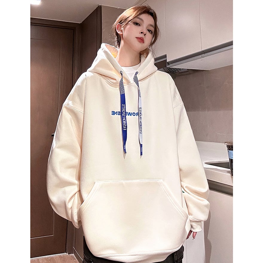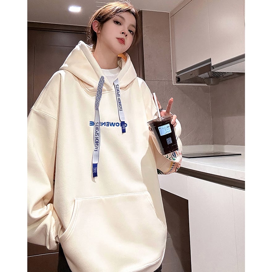 トレンド感のあるドロップショルダーと、体をすっぽりと覆うビッグシルエットが、こなれた雰囲気を演出。ロゴがデザインされたフードのドローコードも、さりげないアクセントになっています。
