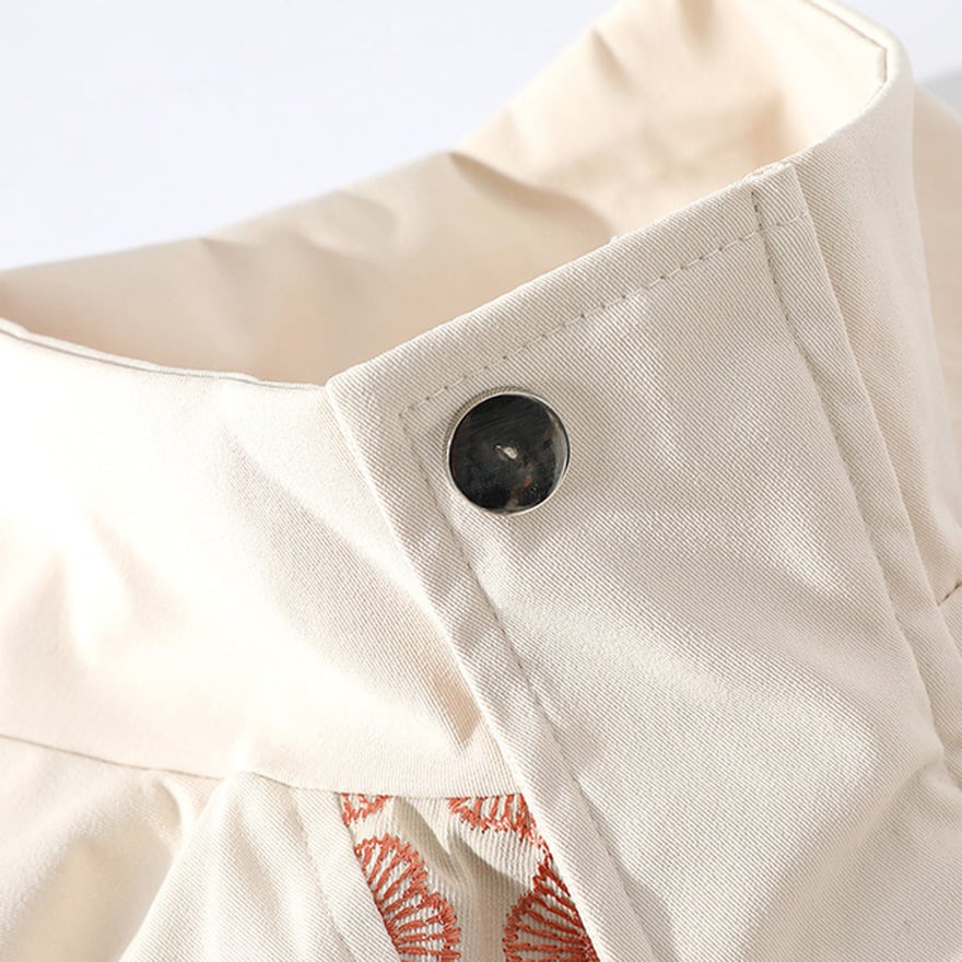 ゆったりとしたシルエットで、ストリート感のある着こなしが可能。ブラックとオフホワイトの2色展開で、どちらも刺繍の美しさが際立ちます。