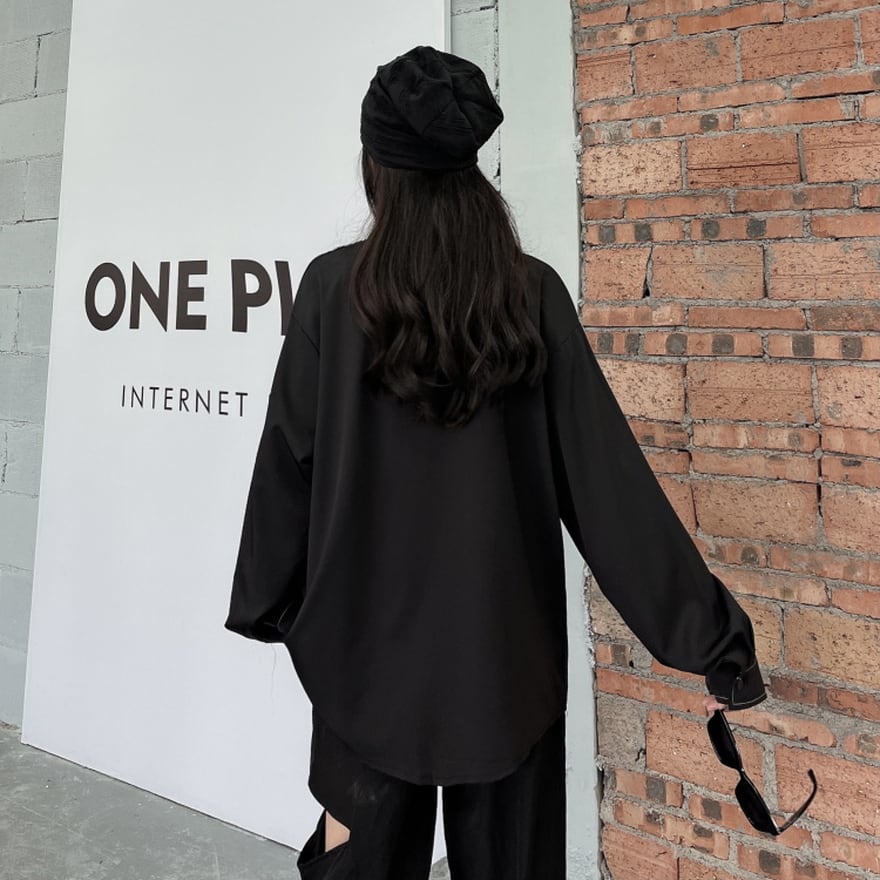 【即納 L】 ゴスロリ 長袖シャツ 編み上げ ストリート系 ストリートファッション