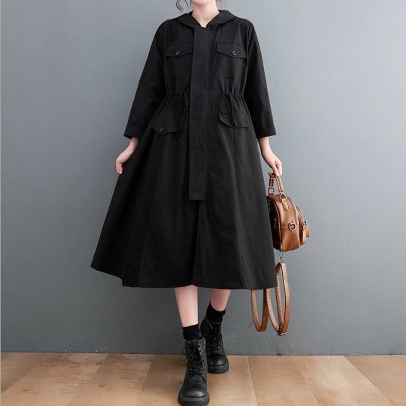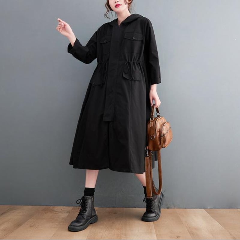 ウエストと裾に配されたドローストリング(紐)で、気分やスタイリングに合わせてシルエットを自在に調整可能。中に着る服を選ばないミニマルなデザインは、あなたの個性を引き立てる完璧な「黒のキャンバス」です。