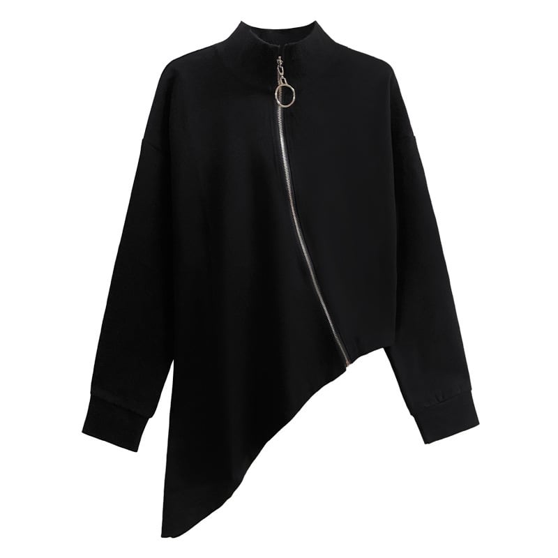 【モードシック】変形ジップ&アシンメトリー丈 ドルマンスリーブ トップス
