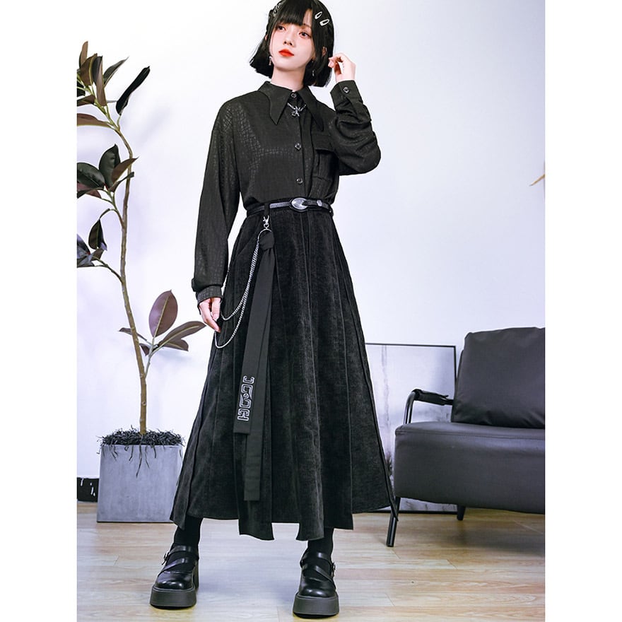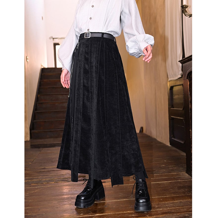 関連キーワード: #サブカル #地雷系 #ゴシック #スカート #プリーツスカート #ロングスカート #コーデュロイ #中華風 #モード系 #黒 #秋冬コーデ