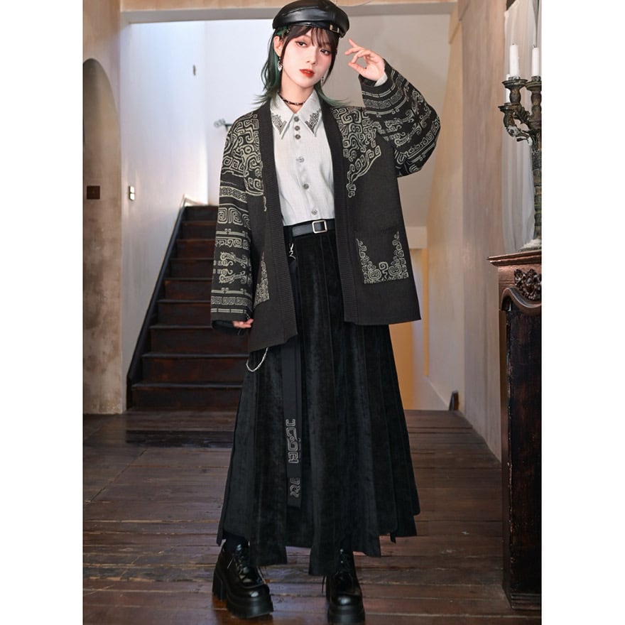 ゴスロリファッション 地雷系 通販 プリーツスカート 秋冬 コーデュロイ 厚手 ロング丈 古怪舎 中華風 ゴシック