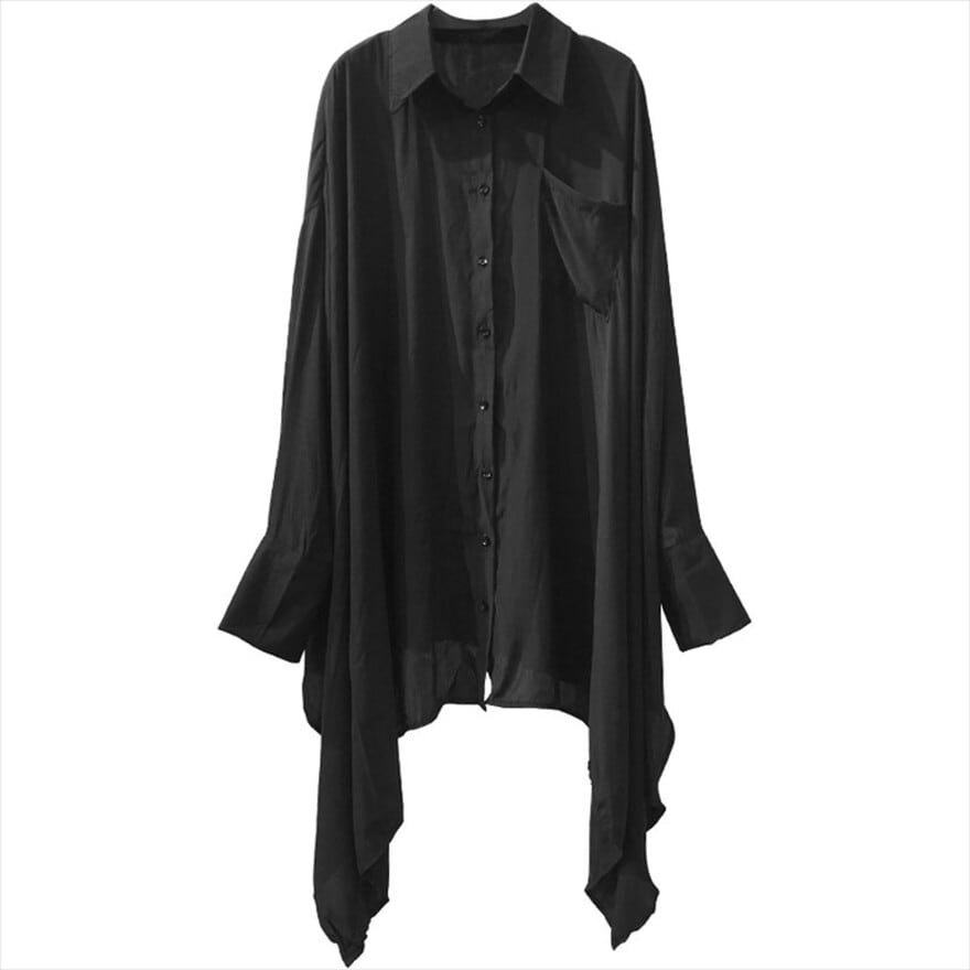 【即納L】ゴスロリ ロングシャツ/シャツワンプ アシンメトリー ロング丈 長袖