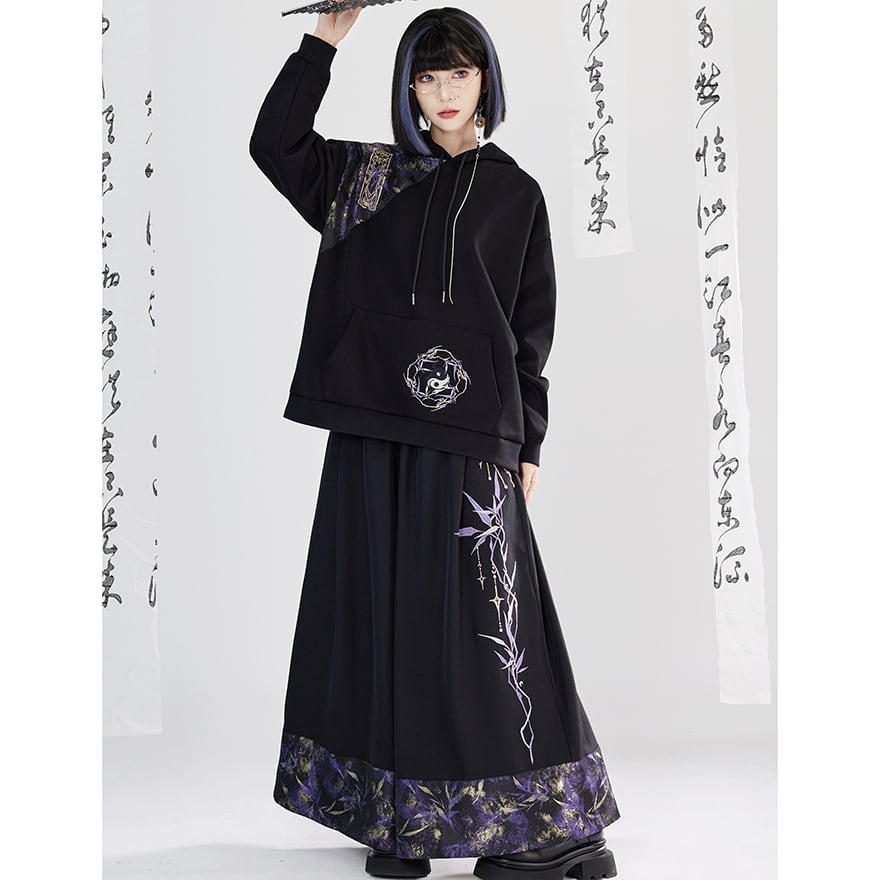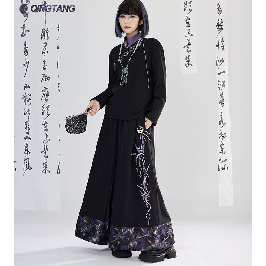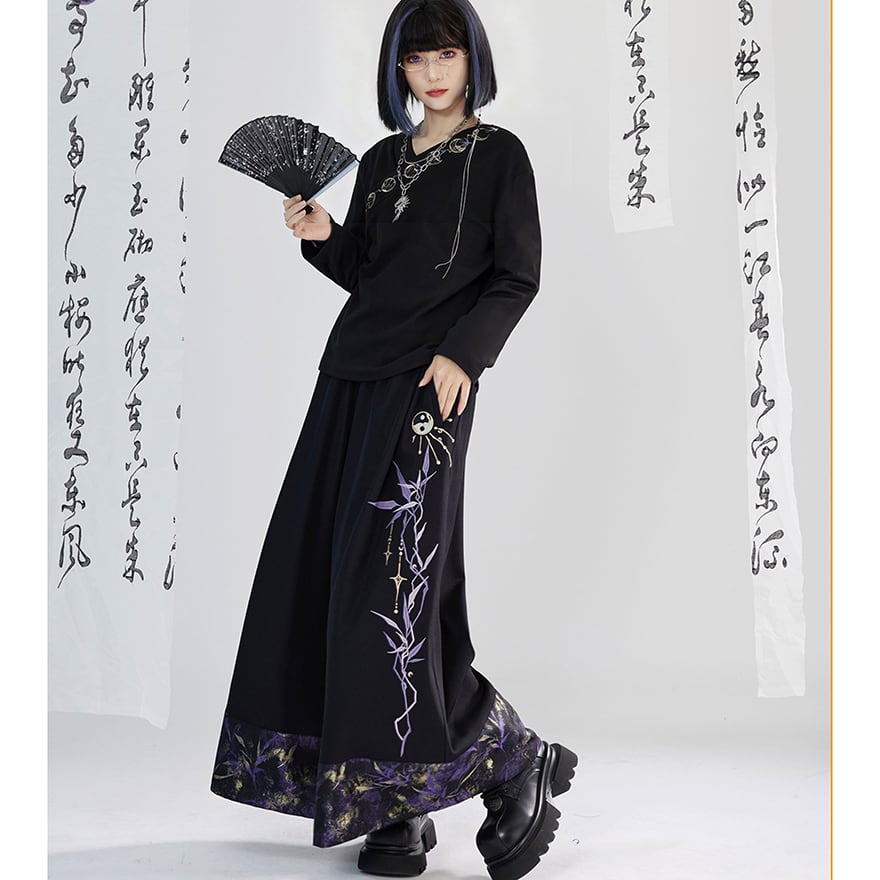 関連キーワード: #サブカル #中華風 #チャイナ #トップス #長袖 #月 #刺繍 #アシンメトリー #モード系 #個性的 #黒